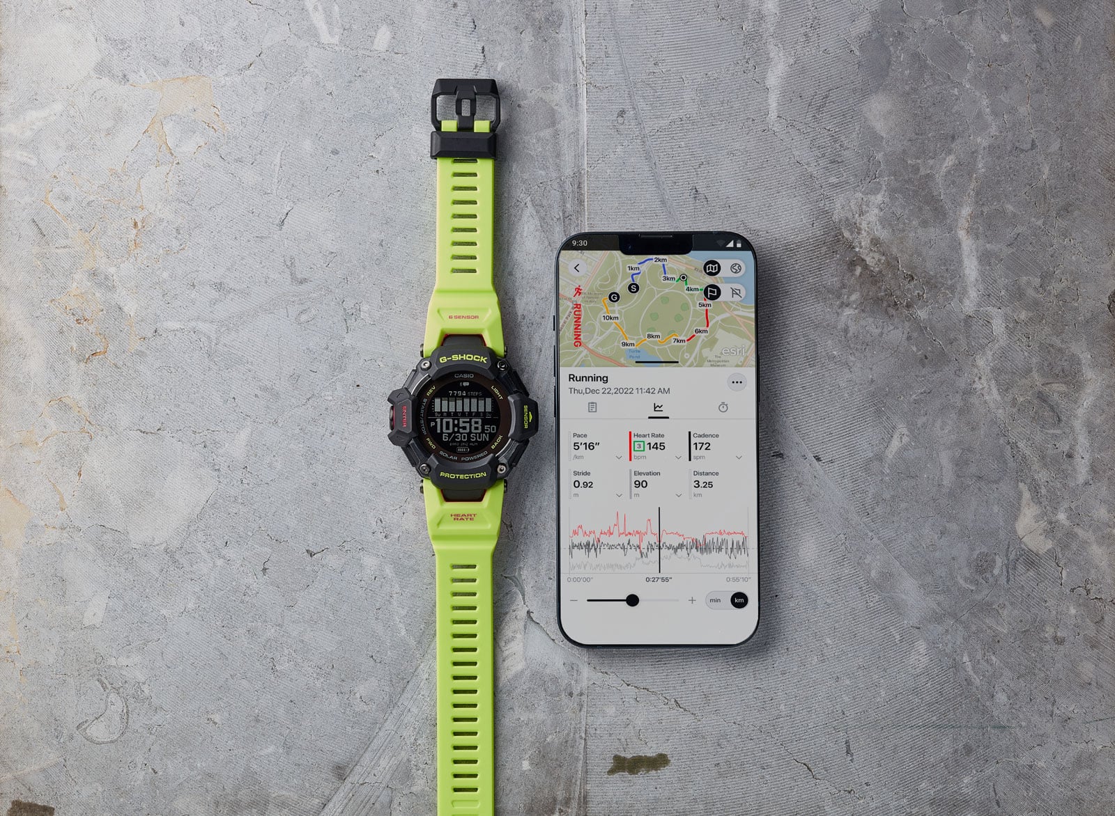 D'autre part, Casio a également constaté qu'au design typique de la gamme G-SHOCK arboré par la GBD-H1000 s'ajoutait une tendance croissante des utilisateurs à intégrer l'exercice physique dans leur mode de vie. La GBD-H2000 hérite donc du gène de la G-SHOCK tout en conservant une taille plus propice au confort lors de l'entraînement. La GBD-H2000 mesure 52,6 mm de large pour 19,4 mm d'épaisseur, quand le modèle précédent affichait des dimensions de 54,6 mm pour 20,4 mm d'épaisseur. La nouvelle GBD-H2000 pèse 63 g, soit 38 g de moins que la précédente.