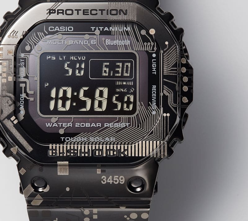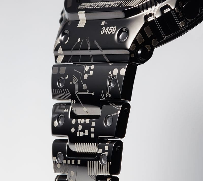 La caractéristique la plus remarquable de ce modèle est le processus de conception de la carte de circuit imprimé à proprement parler, qui a nécessité d'extraire du module quartz 3459 installé dans la série GMW-B5000 les pièces qui se prêtaient à un motif camouflage. Au total, huit motifs ont été nécessaires pour le composer, avec différentes positions d'extraction pour l'avant et les côtés droit et gauche du boîtier, et même pour le cinquième maillon du bracelet. De plus, si les motifs ont été sélectionnés à partir de différents emplacements sur la base, ils ont été combinés de façon à donner l'impression qu'ils s'imbriquent lorsque les pièces sont assemblées, dans une conception pensée un peu comme une sorte de casse-tête.