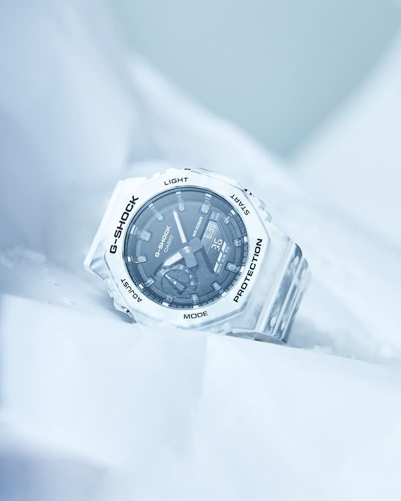 La G-SHOCK puise dans la beauté de l'hiver avec sa toute dernière série de montres. La marque a dévoilé la toute nouvelle collection Grunge Snow Camouflage, qui propose un motif camouflage neige d'un blanc immaculé ainsi que plusieurs styles de montre à base entièrement blanche uniques permettant d'arborer au poignet toute la beauté de la saison. Cette nouvelle sélection est basée sur quatre modèles : le modèle octogonal fin GAE-2100, la montre à boîtier carré DW-5600, la sportive à technologie analogique-numérique GA-2200 et la robuste et puissante GA-900.