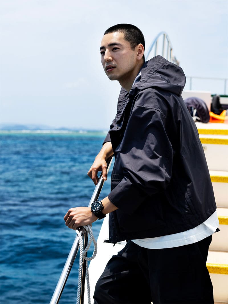 Si ces modèles de plongée authentiques font naturellement la fierté des équipes de G-SHOCK, ils offrent également des niveaux de performances et de fonctionnalité remarquables en conditions réelles de plongée. L'étanchéité à l'air a toutefois constitué un obstacle majeur à la satisfaction des spécifications requises. La MRG-B2000, comme toutes les montres de la série MR-G, affiche un boîtier à conception symétrique, si bien que l'étanchéité à l'air pouvait être assurée en fixant la lunette supérieure et le boîtier central à l'aide de vis. Dans une conception asymétrique telle que celle de la Frogman, en revanche, l'espace nécessaire pour fixer les vis sur le boîtier central n'existe pas. Cette étanchéité n'était donc possible qu'en dotant la conception de la Frogman d'une nouvelle structure. Une technique a dès lors été mise en œuvre pour fixer ces composants par soudage au laser. Une technologie de traitement d'une précision extrême était donc essentielle. Si l'équipe de développement G-SHOCK a fini par surmonter le problème le plus critique, c'est grâce à l'assistance technique d'un fabricant japonais contribuant à la production de la sonde interplanétaire Hayabusa.