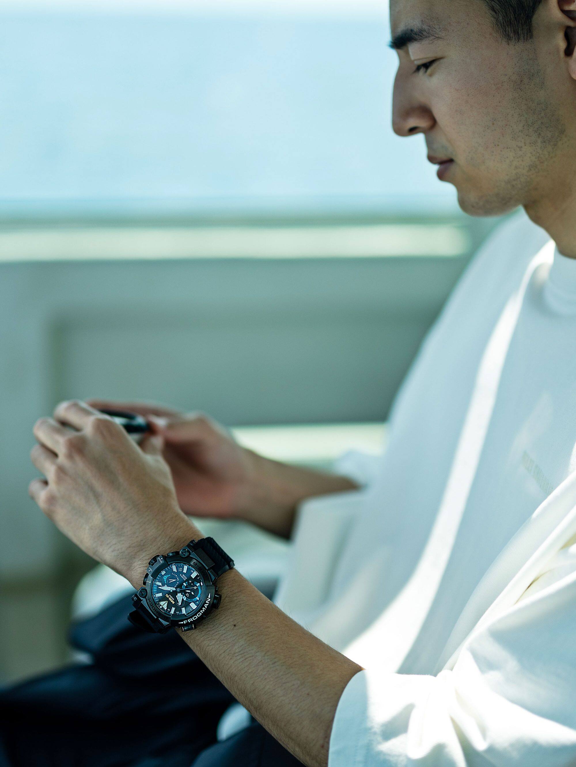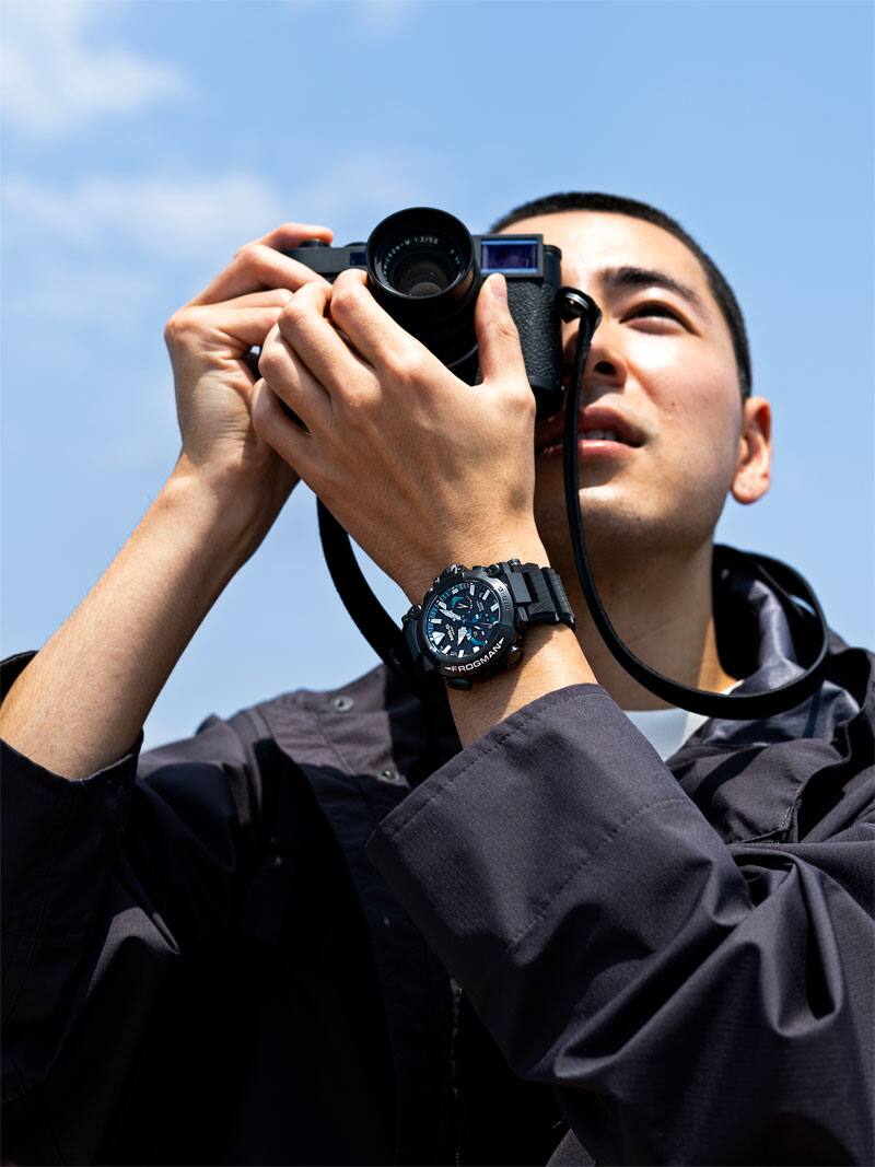 Si la Frogman est aujourd'hui l'une des collections les plus emblématiques de la G-SHOCK, c'est à Yuichi Masuda, membre de l'équipe de développement originale de la G-SHOCK et aujourd'hui Président-directeur général et Directeur des ressources humaines de CASIO Computer Co., que l'on doit d'en avoir conçu l'idée il y a 30 ans. La toute dernière MRG-BF1000R a été planifiée par Shingo Ishizaka, qui avait supervisé la conception de la première montre Frogman. Le dos de boîtier vissé en verre de saphir est décoré numériquement d'un motif ondulé et arbore le même personnage de grenouille que celui qui était gravé sur la Frogman originale.