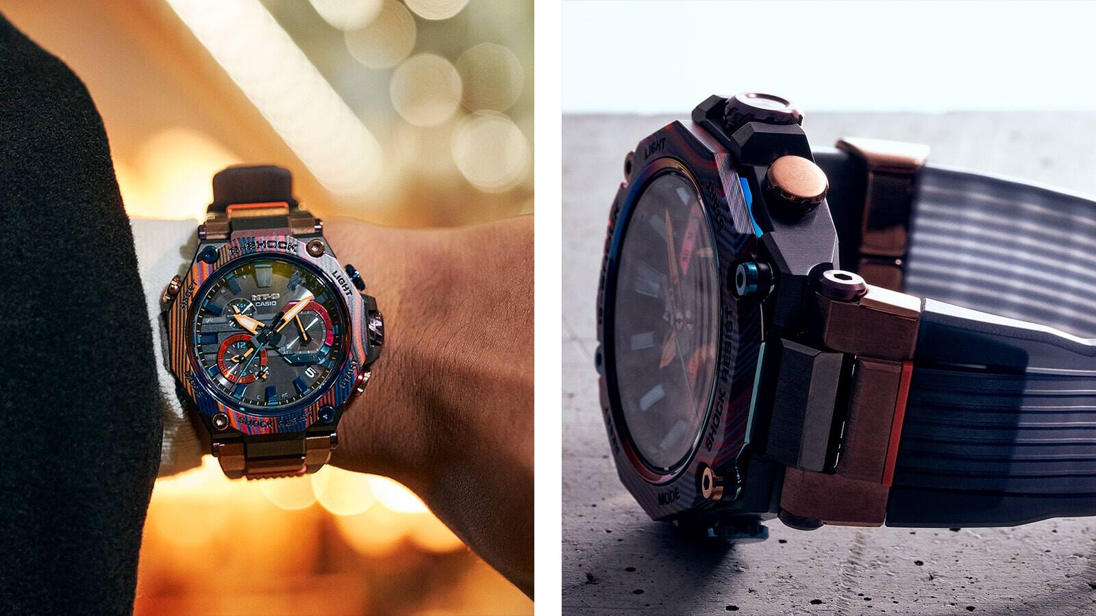 Le produit, par ailleurs, n'est pas le résultat d'un modèle créé de manière aléatoire. Le processus de production se basant sur le rendu final, il a nécessité de nombreux essais et erreurs répétés avant de parvenir à la combinaison idéale de motifs et de couleurs de lamination. Ainsi réalisée, la lunette en carbone multicolore s'apparente à une pièce de marqueterie japonaise, où le motif souhaité apparaît quel que soit l'endroit où le bloc de carbone laminé est coupé, mais selon la position dans laquelle il est coupé. En d'autres termes, le motif de chaque montre est légèrement différent de celui de la suivante, faisant de chaque MTG-B2000XMG un modèle unique au monde.