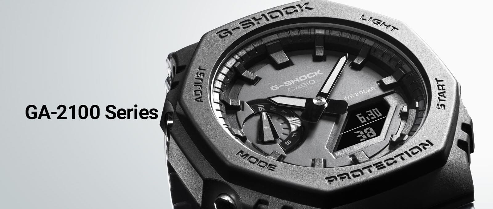 O primeiro relógio GA-2100 foi introduzido em 2019, ampliando as possibilidades de resistência e estilo analógico. Herdeiro das estruturas de design conceitual do DW-5000 e do AW-500, o GA-2100 lançou mão das mais modernas tecnologias para capturar a essência da identidade de seus antecessores, transformando-a em um novo formato físico. O resultado disso foi nada menos do que a criação de um novo carro-chefe para o G-SHOCK, reconcebido a partir do ponto de vista das origens da marca, mas com cerca de 30 anos de experiência depois do lançamento do AW-500.
