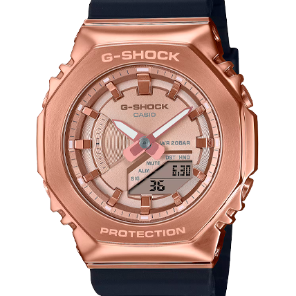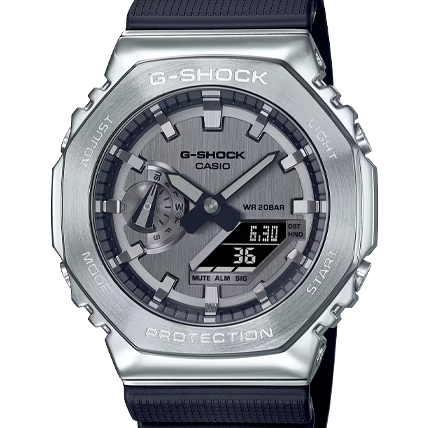 Inspirado no design original do primeiro G-SHOCK, com sua icônica forma octogonal, este modelo totalmente metálico combina resistência extrema com elegância refinada. O mostrador em estilo cronógrafo reforça uma estética de sofisticação técnica. Apresentamos o lendário G-SHOCK 2100 Style agora em uma impressionante versão cronógrafo inteiramente em metal.