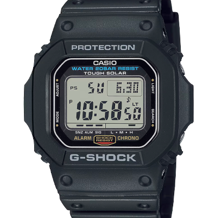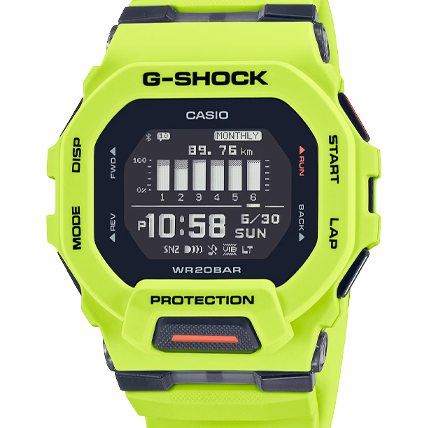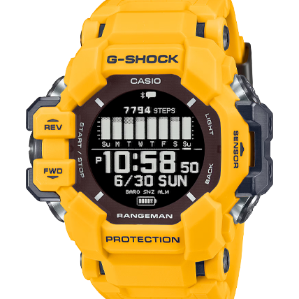 O relógio é protegido por um exterior de metal completo, com material de aço inoxidável usado para a moldura, caixa e pulseira. Componentes amortecedores de resina fina são instalados entre a moldura e a caixa para ajudar a absorver impactos no módulo. Além disso, uma estrutura de três pinos é utilizada nos encaixes da caixa para dispersar choques na parte conectiva da pulseira.