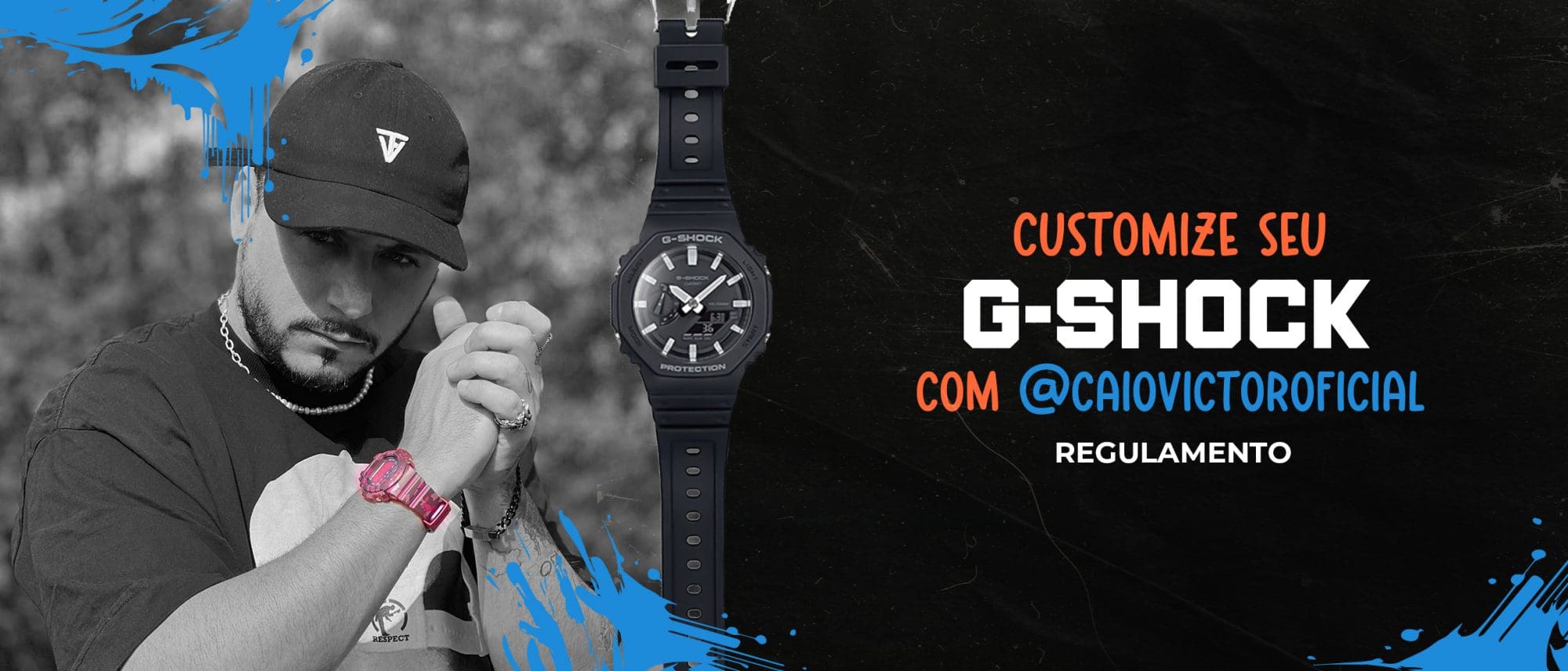 2.2. Os 30 primeiros participantes que realizarem o cadastro e irem até a loja da G-Shock Store dentro do horário informado serão contemplados com uma customização que será realizada pelo influenciador Caio Victor.