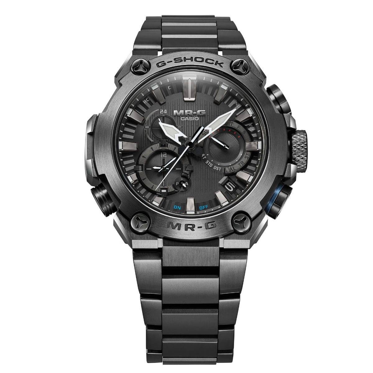 The case and band are made with titanium, a material that is light, rust-resistant, and gentle on the skin. The surface is applied with a deep-hardening process and DLC coating which enhances scratch resistance, and finished with a black exterior brimming with presence.