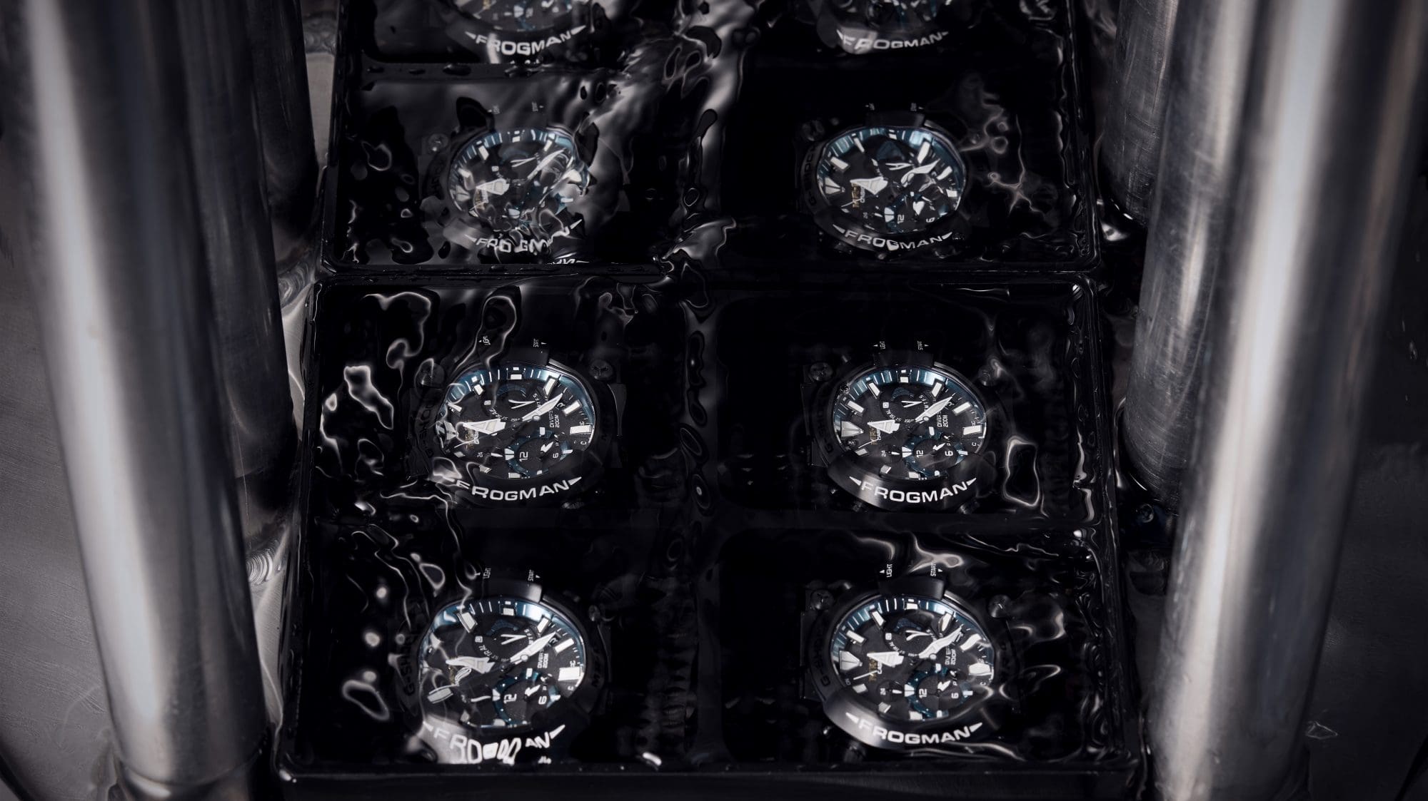 Al finalizar el largo proceso de fabricación, todos los relojes MR-G se someten a dos pruebas de resistencia al agua diferentes, una con aire a presión y otra con agua a presión. Los expertos de Yamagata Casio realizan estas pruebas con una gran confianza, respaldados por su registro de control meticuloso en cada paso del proceso y su historial continuado de compromiso con la calidad.