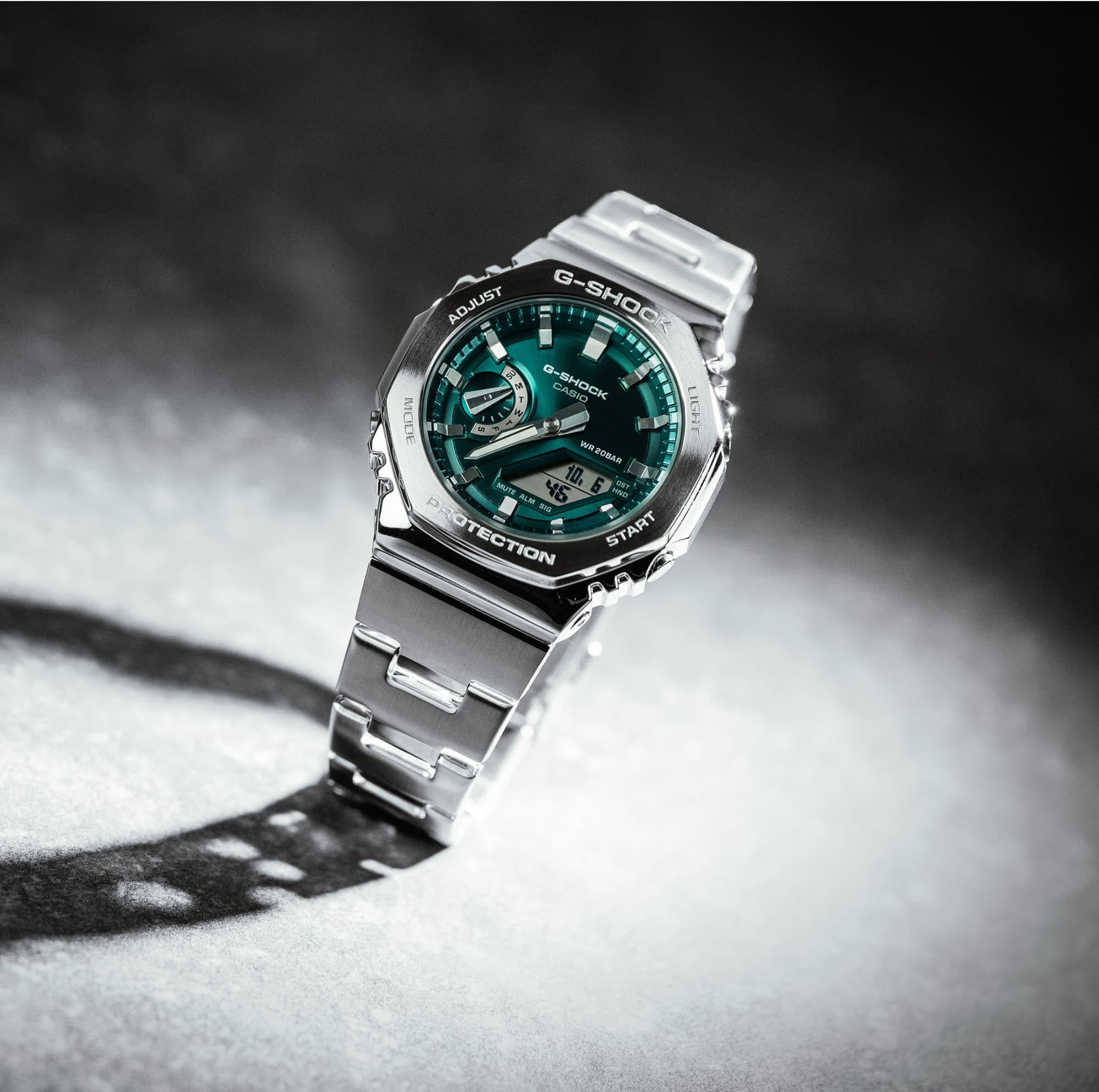 Two worlds merge and herald the beginning of a new era: A classic and elegant business look meets cool street wear, while stylish metal meets tough resin and a masculine design. The G-STEEL models combine the highest quality materials with a flexible design and catch the eye with elegant coloured accents and a three-dimensional look. Designed for the toughest requirements, the shock-absorbing resin offers maximum protection against all kinds of shocks & The noble look of the silver metal makes the exclusive all-rounder suitable for office use.