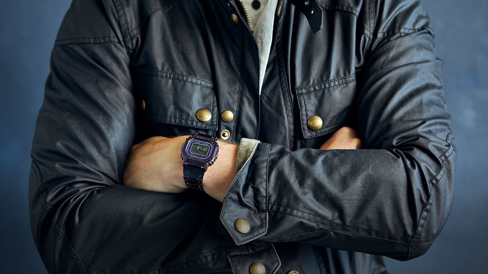 The colored metal components are mirror-finished, but also employ a degree of artistic restraint in a chromatic ode that would have been all to expected to render in a more neon-forward technique. But that restraint only serves to enhance the GMW-B5000PB-6’s charm. Dark blue case buttons and a reversed light-on-dark LCD screen with complementary pops of color seals the deal on this modern interpretation of a classic G-Shock footprint. The idea for the Purple IP began roughly four years ago, but took much trial and error to achieve the ideal tone since blue colors, including purple, are susceptible to color swings due to slight differences in processing conditions. With the GMW-B5000PB, the color has finally seen the light of day.