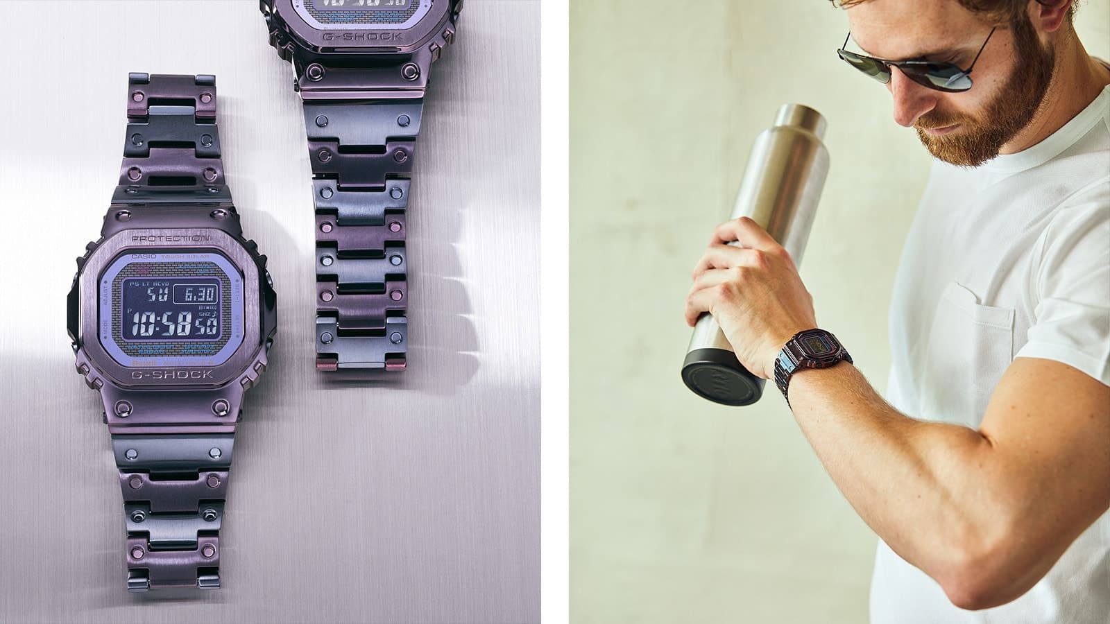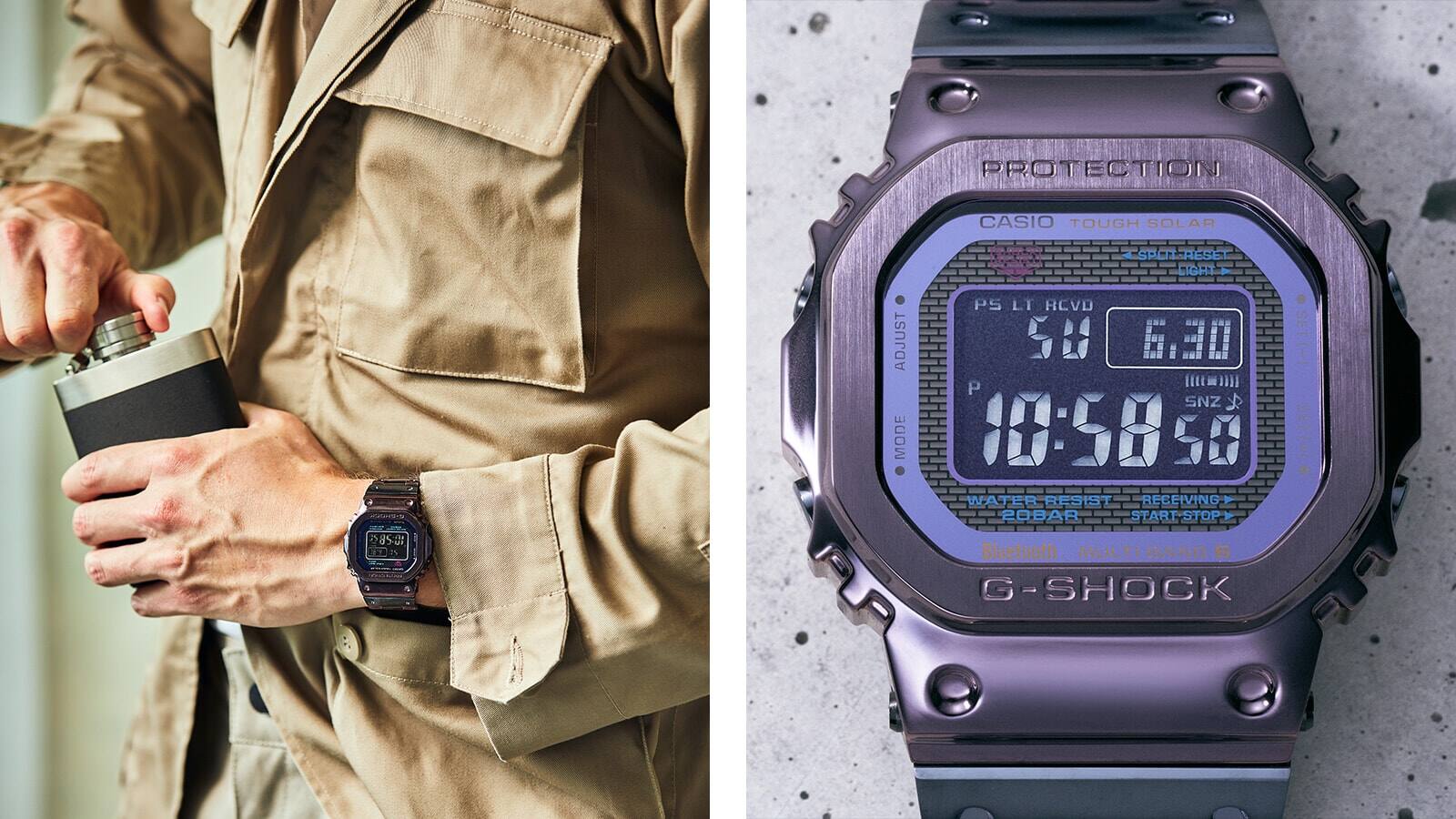 At first glance, the combination of purple and blue-gray may look avant-garde and typical of G-SHOCK, but when placed on the wrist, it is not only playful but quite handsome. Above all, the bicolor and brightly colored IPs give us even more reason to look forward to the development of the GMW-B5000 series and other metal G-SHOCK.