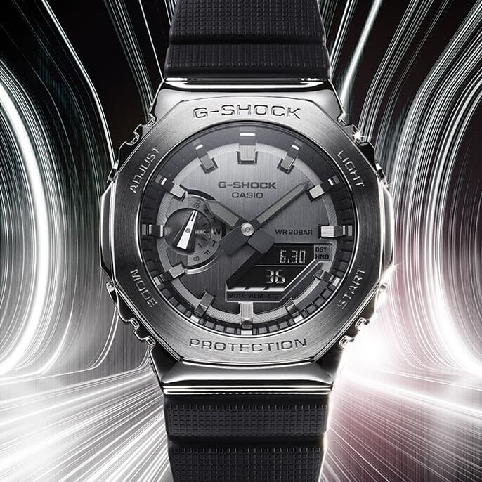 A new G-SHOCK standard-bearer in the octagonal form of the original model, but now in metal