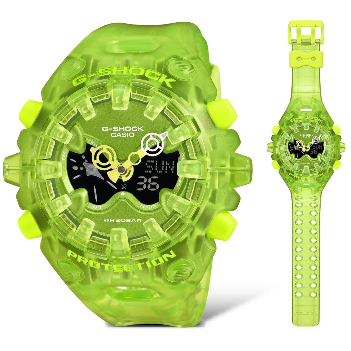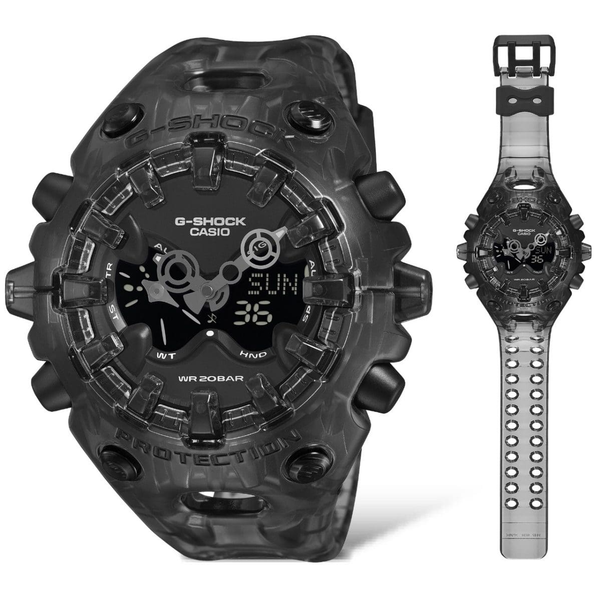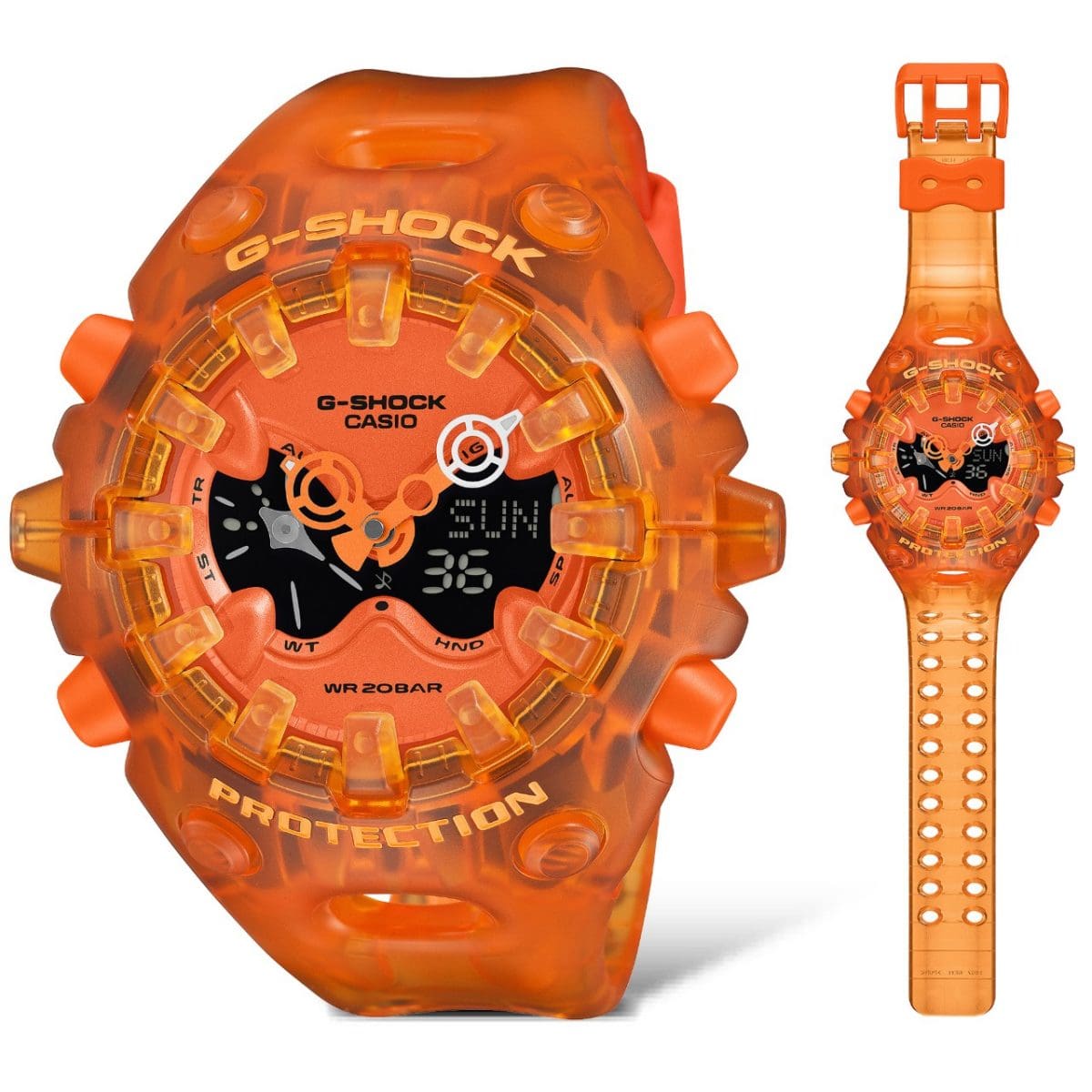 Everyone counts on G-SHOCK for unceasing evolution. But check out this comprehensive new reinterpretation, representing a whole new approach to construction and design that powerfully conveys the brand’s unwavering commitment to toughness. The GA-V01 features an exterior with an organic form bringing together components with sharply defined edges, combined with a large, full-screen LCD topped by a metallic dial with openwork and employing the newly developed Shock Release Hand, among other features. With its strikingly innovative and original design concept, the GA-V01 exudes G-SHOCK toughness, restating the brand’s never-ending spirit of challenge and commitment to delivering strength.