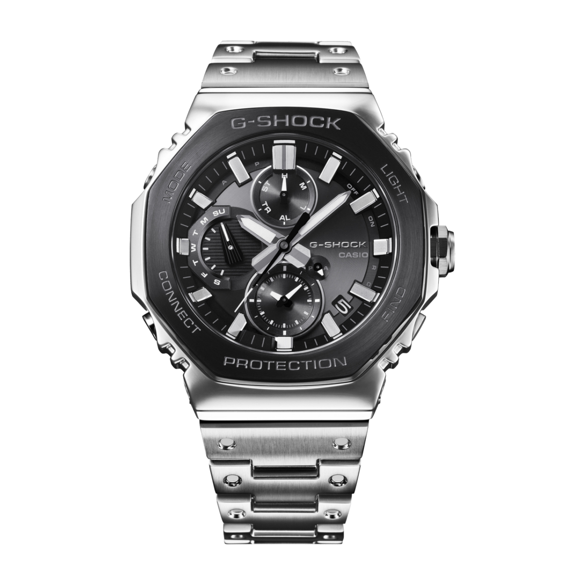 This collection is based on the GMW-B5000, GM-B2100, and GMC-B2100 — watches that inherit the iconic form of the DW-5000C, the first G-SHOCK. The top bezel, a defining feature of the design, is finished in black. Crafted from stainless steel, the bezel undergoes demanding processes of forging, cutting, and polishing to achieve a sharp, dimensional finish.