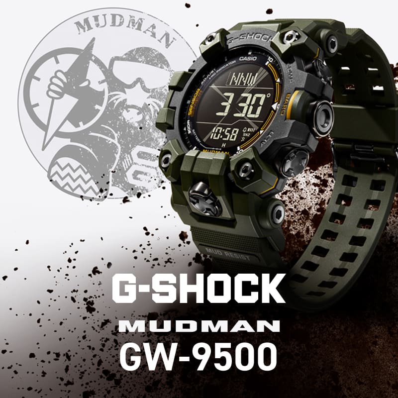 L'istinto da solo non basta. I modelli coniugano una resistenza eccezionale con una sofisticata tecnologia a sensori. Premendo un pulsante, puoi misurare la pressione atmosferica, l'altitudine e la temperatura, nonché individuare i punti cardinali. Fai quello che deve essere fatto. Non affidarti al caso ma agisci con precisione e in anticipo grazie ad un orologio G-SHOCK RANGEMAN & MUDMAN.