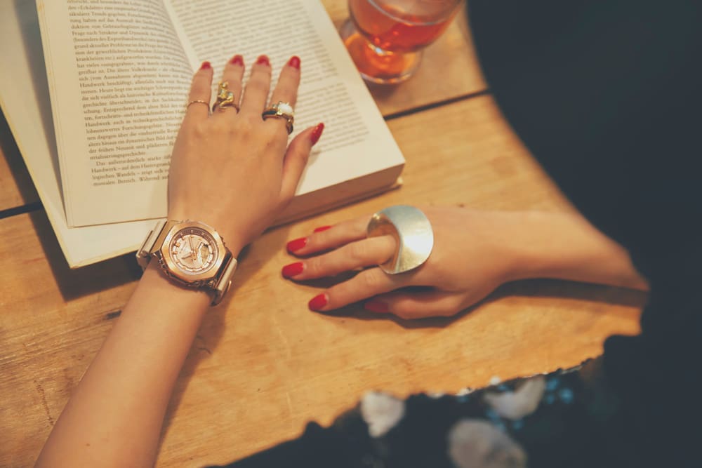 コンパクトなサイズに仕上げたメタルカバードシリーズの《G-SHOCK》。ピンクゴールド×ピンクベージュのカラーリングが印象的な「GM-S110PG-4AJF」は、エッジーなフレームと色味の雰囲気が合わさることで、他にはないインパクトのあるデザインのウォッチに。この時計を主役にしつつ、リングやブレスレットなど、他のアクセサリーを重ね付けして手元のドレスアップを楽しむのも◎。