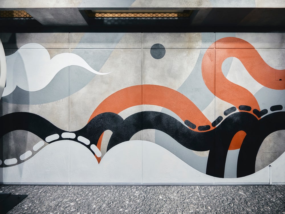 KAMI:今回のプロジェクトもそうですが、壁画を描く時に考えているのは、アートがその環境にどんな影響を及ぼすのか。ポジティブな作用を与える物として、見た人の一瞬を豊かにするものであれば良いなと常に願っています。