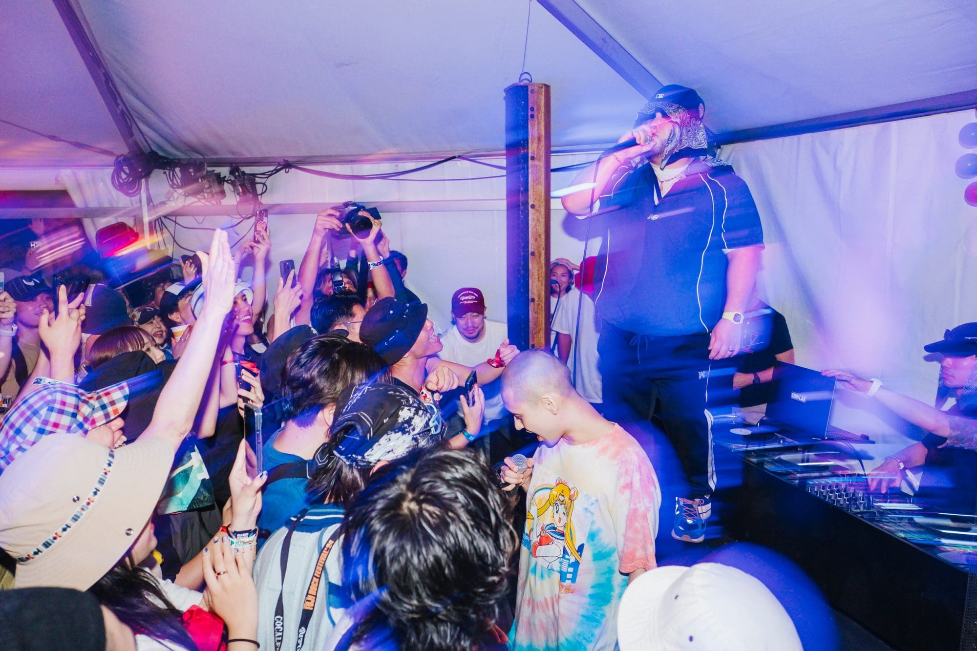 開放的な大自然の中で音楽を楽しむフジロックの中でもひと際カオスな雰囲気で異彩を放つパレスの本番はヘッドライナーのライブが終わる頃から始まります。