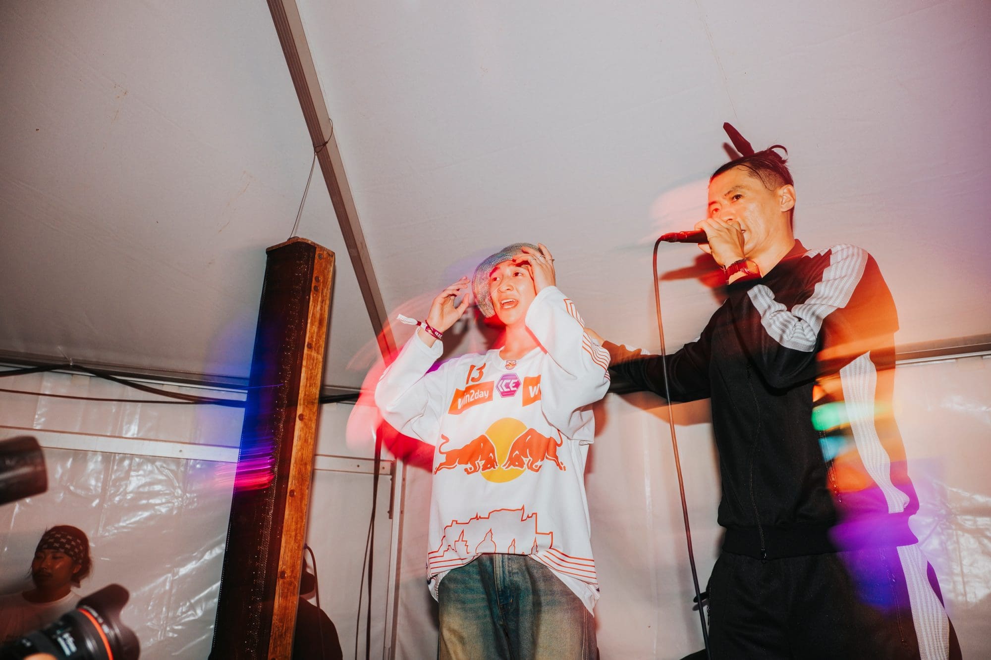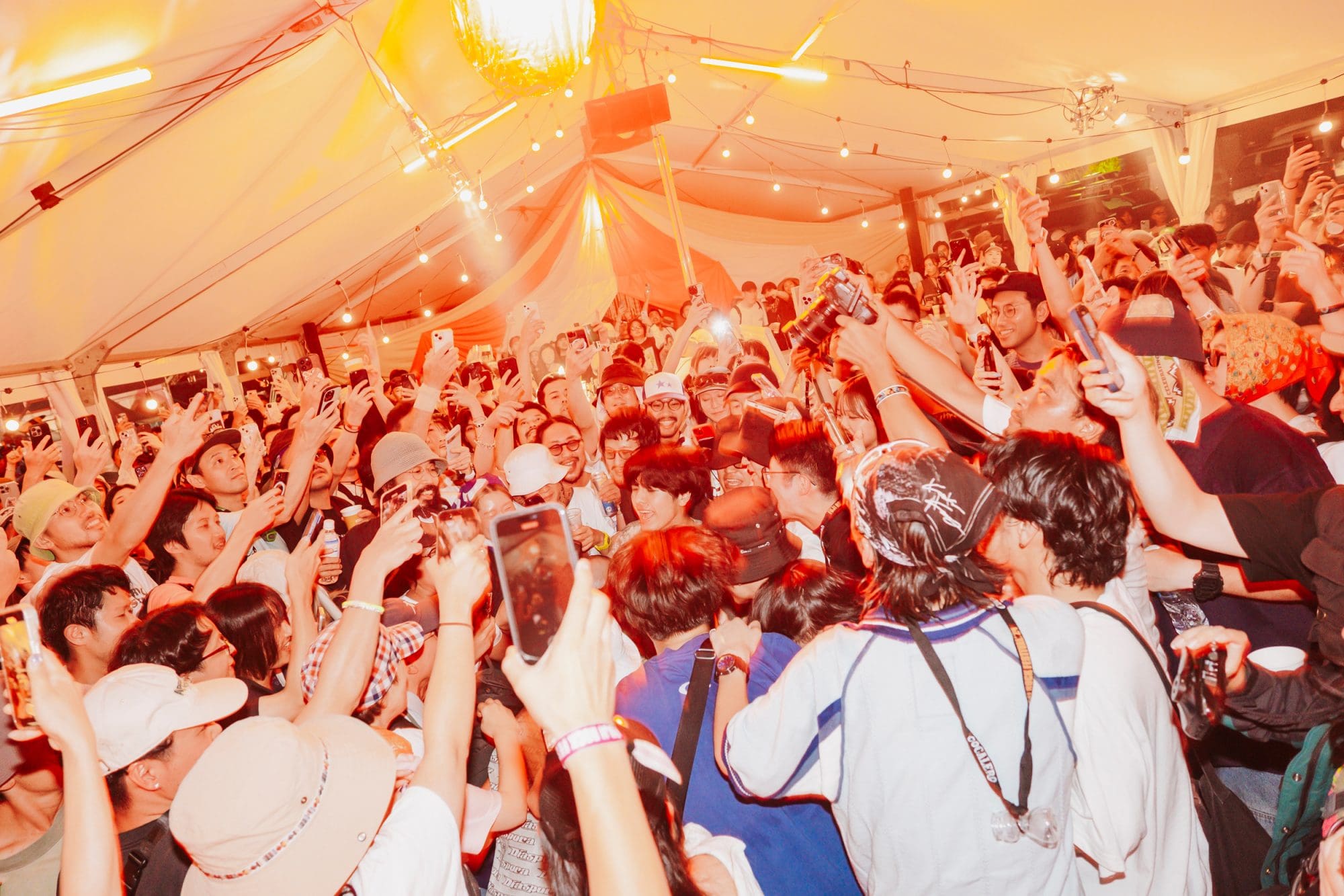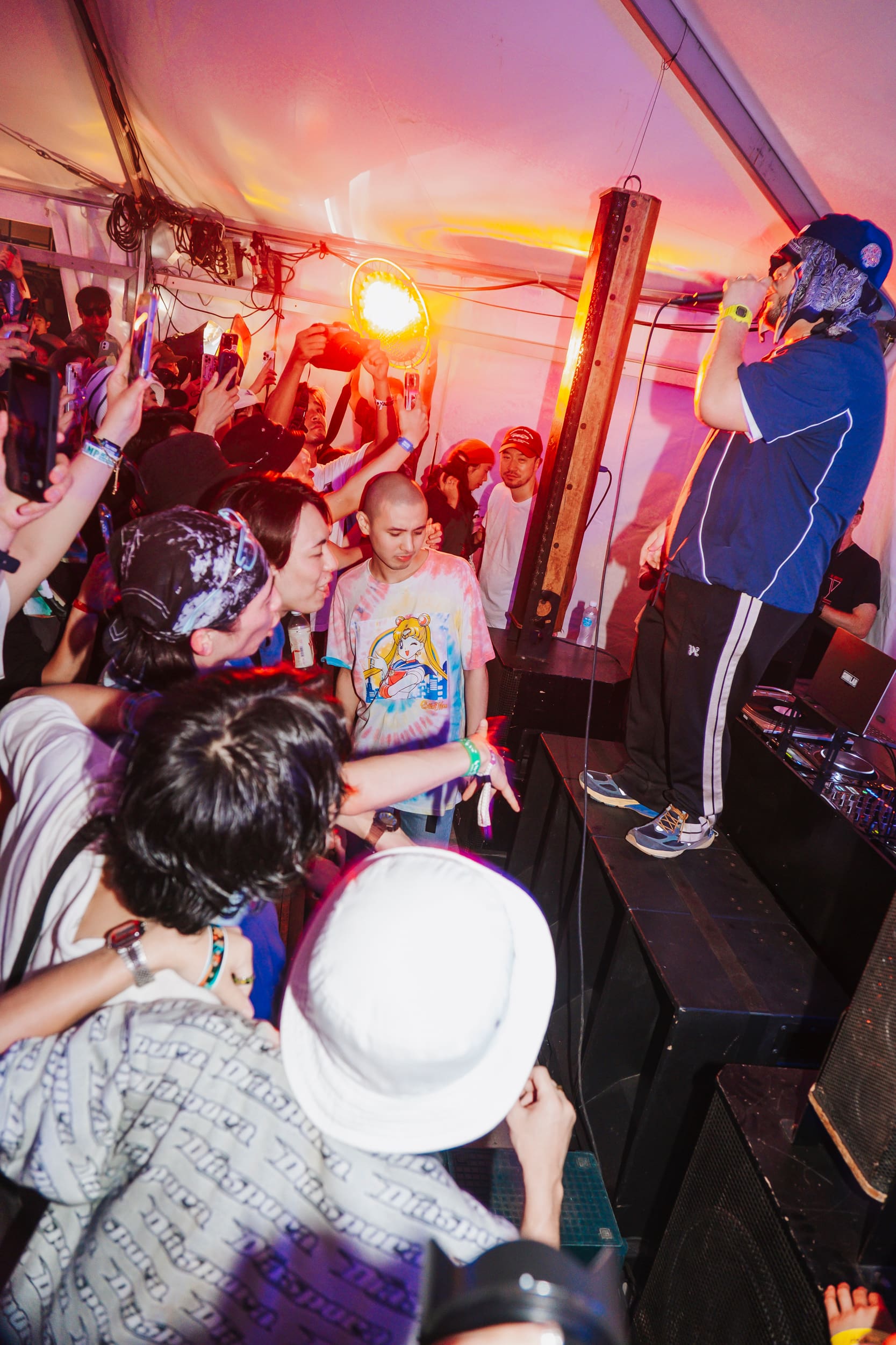 LIVE終盤には当日RED MARQUEEで出番を終えたKID FRESINOさんがまさかのサプライズ登場!代表曲『LOVE』では溢れんばかりに膨れ上がったVegas in milk全体が大合唱、床が抜けそうな程の絶頂はパレスのカオスを体現していました。