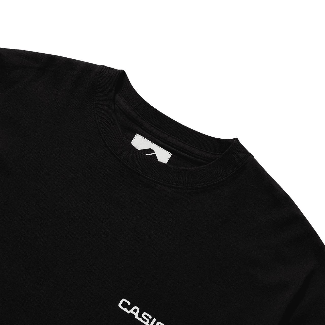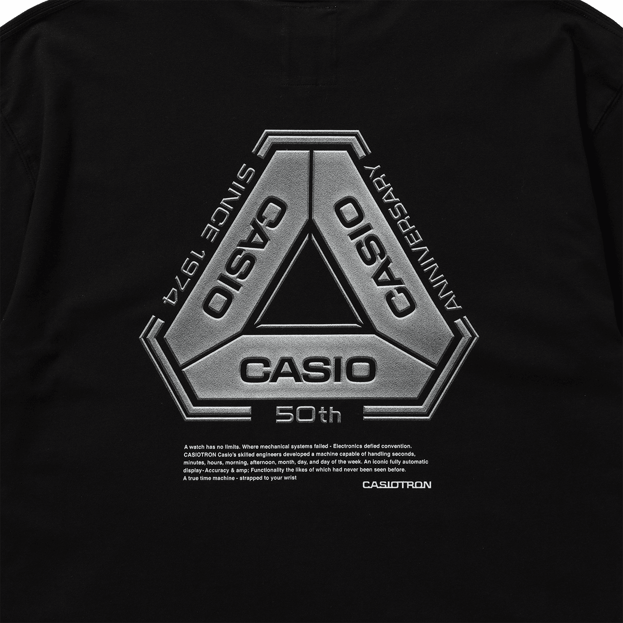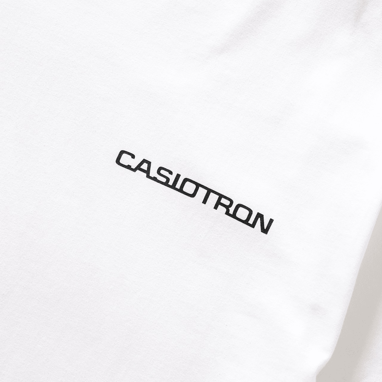 カシオ初の腕時計である「CASIOTRON」からインスパイアされたオリジナルデザインTシャツ。フロントには「CASIOTRON」ロゴを、バックプリントには時計の裏蓋にデザインされたグラフィックや発売当時の新聞広告に掲載されていた 「デジタル時計として世界初のオートカレンダー機能」についてのテキストを落とし込みました。サイジングは過去の“G-SHOCK PRODUCTS”でも好評を博した適度なルーズシルエットを採用。カシオ時計事業50周年の節目だからこそ実現した、国内数量限定のコレクタブルなアイテムです。