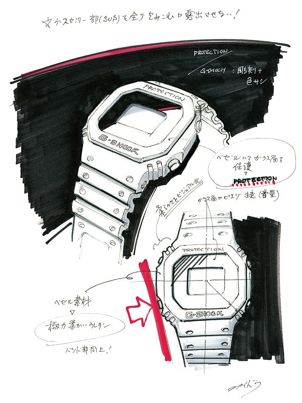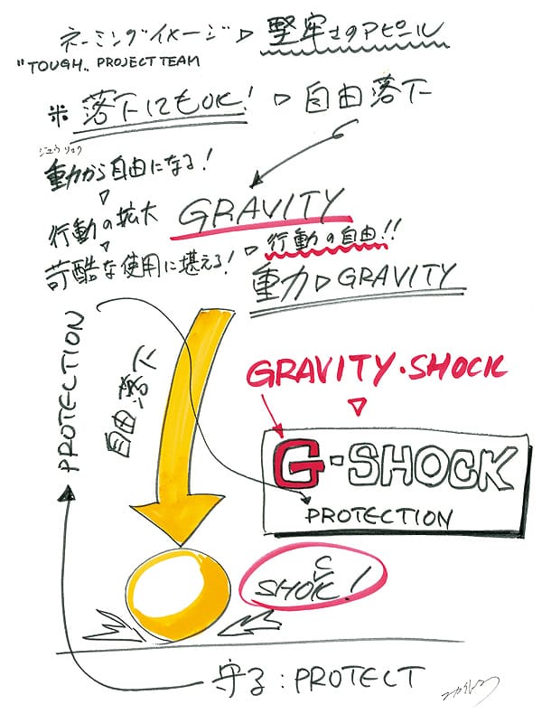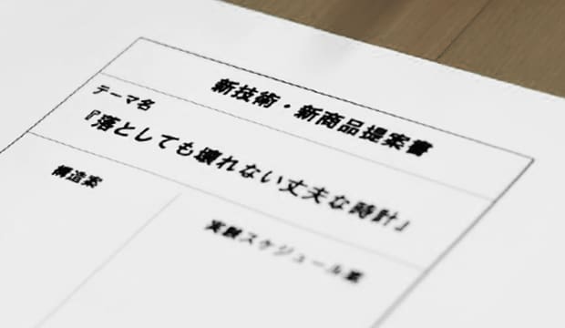 「落としても壊れない時計を作りたい」。社内会議に提出された企画書には、たった1行こう記されていました。書いたのは、当時、時計の外装設計を担当していた伊部菊雄。たまたま仕事中に落として壊れた時計を見て思いついた単純明快な発想でした。時計は精密で華奢なもの。落とせば壊れるのが当たり前だった当時、タフというコンセプトは時代錯誤であり、型破りなものでした。しかし、その提案は、受け入れられます。わずか3名からなるプロジェクトチーム・タフが結成され、新たな時計の開発がスタートしました。