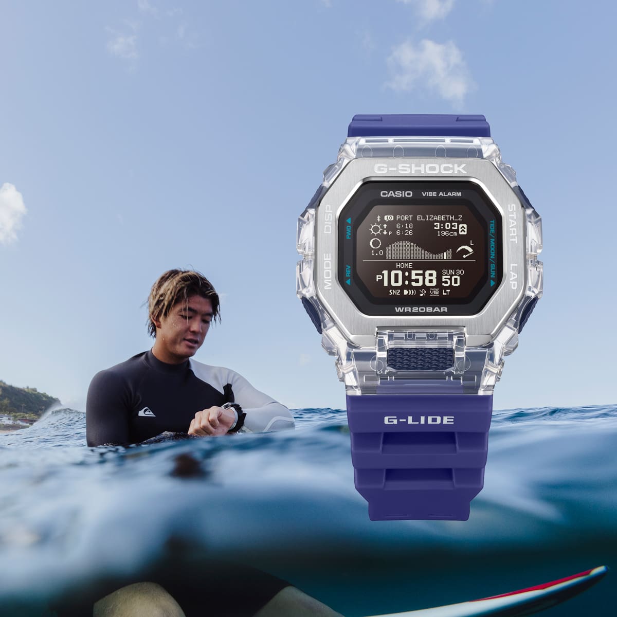 夏の海をイメージしたホワイト&ブルーのカラーリング、夜光虫が放つ幻想的な光を表現したブルー蓄光フェイス。昼と夜で異なる表情を見せるビーチの情景を表現しました。特徴的なダイアルデザインを採用した各モデルの個性を、色と光で引き立てます。