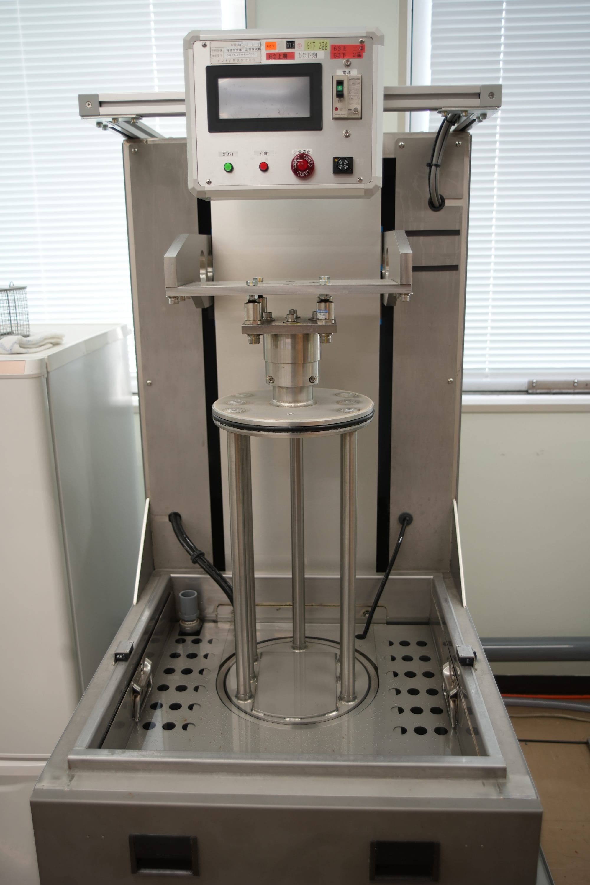上とは別の防水試験機。水中でボタン操作のテストを行うことも可能です。