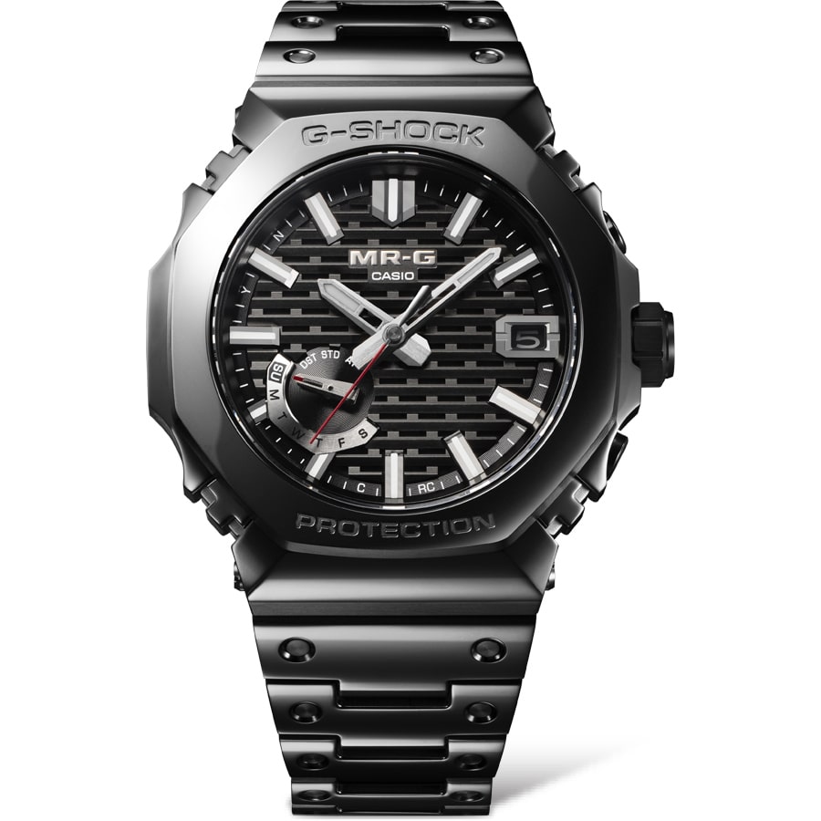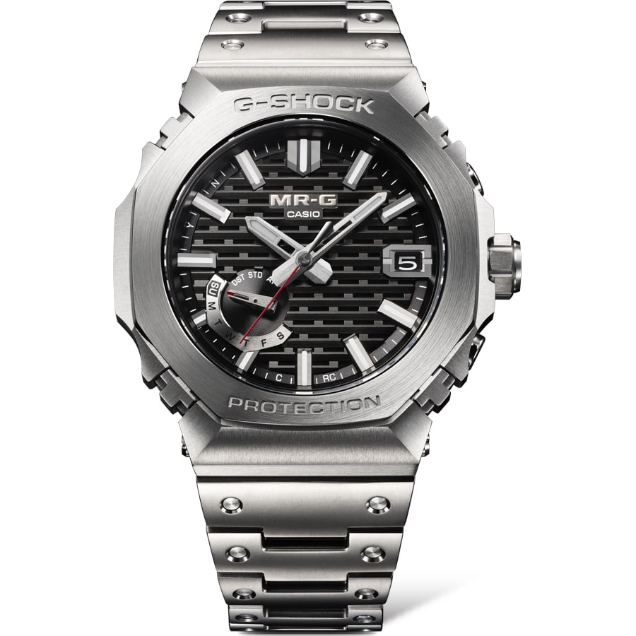 東北地方最古にして国宝の五重塔の、夜明けの静寂な山中に朝霞がたなびく荘厳な情景を日本の伝統色「縹色(はなだいろ)」の青でダイアルに表現した「MRG-B2100D-2AJR」をはじめ、山形カシオの最先端のテクノロジーと最高峰の匠の技を融合し、構造・機能・素材・仕上げのすべてに徹底的にこだわった「MR-G」のラインアップをご紹介いたします。