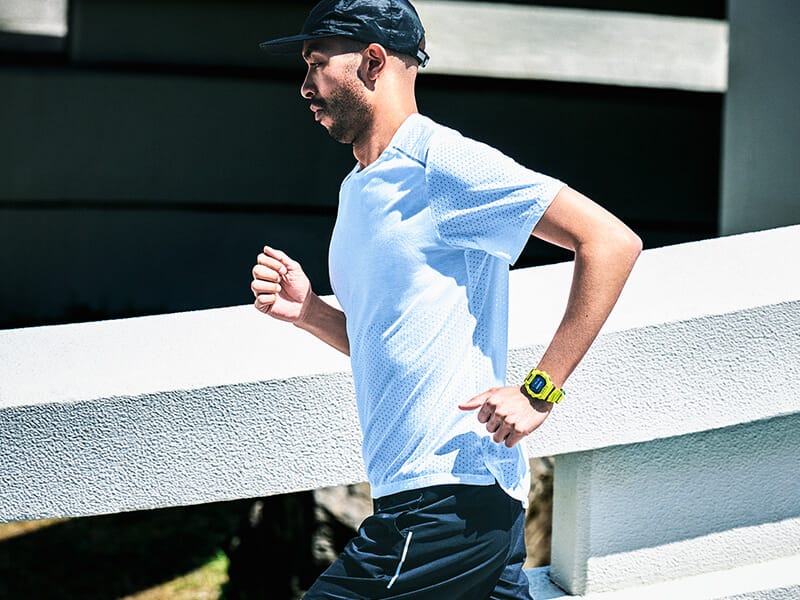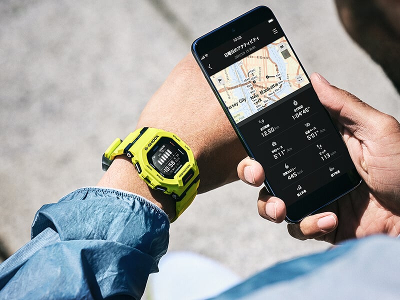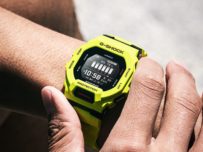 새로운 구조 설계를 통해 케이스의 돌출부가 베젤의 슬릿과 연동됩니다. 이를 통해 이전 모델인 GBD-100 모델보다 작은 형태를 갖추었으며, 활동할 때 더욱 편안한 착용감을 제공합니다. 슬릿 사이로 문자 선이 보이는 시각적 효과를 통해 시계의 슬림함이 더욱 강조되는 측면 디자인을 완성합니다.