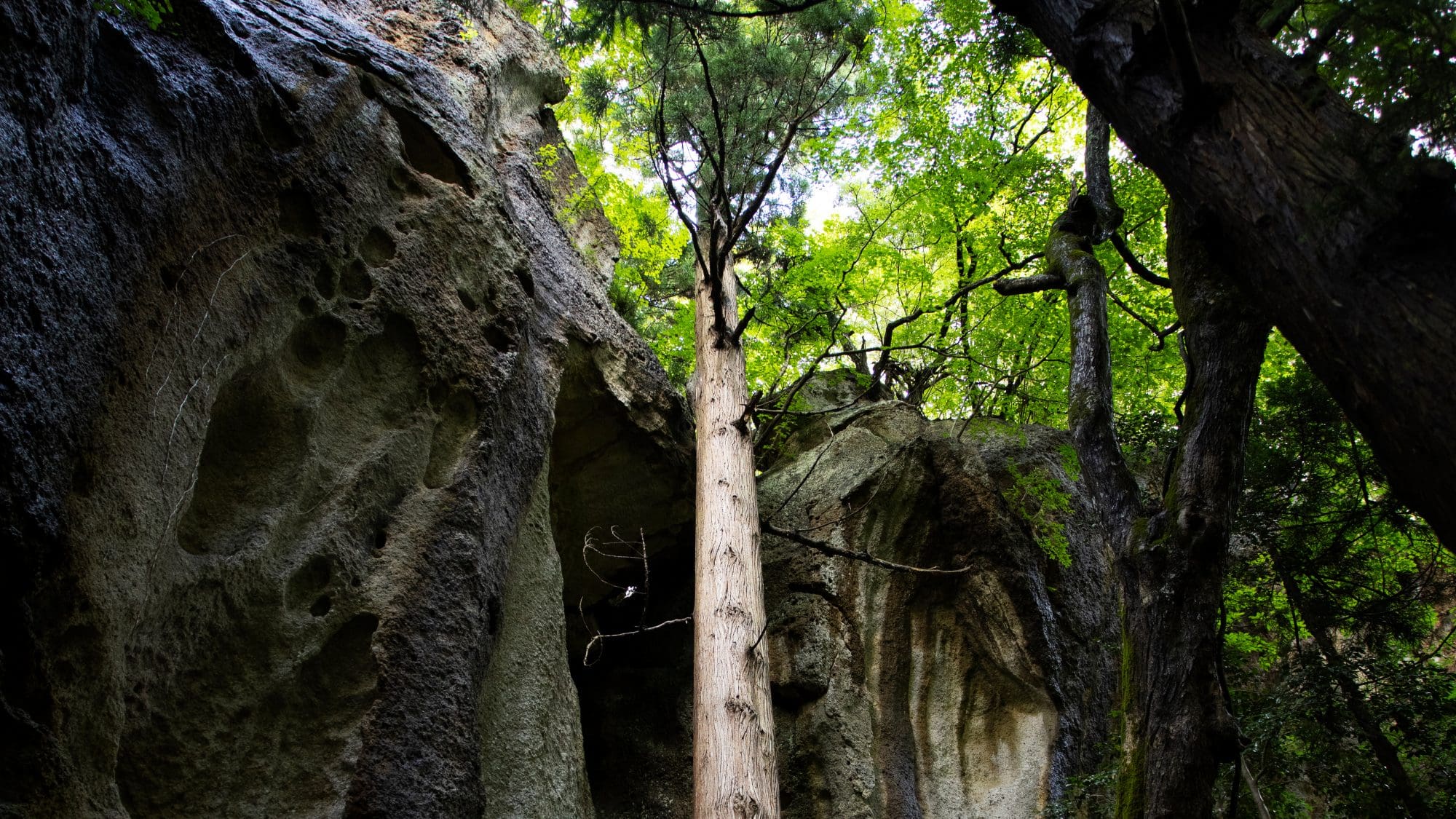 다루미즈 유적: 거대한 돌과 바위 표면의 복잡한 형태가 독특하고 신비로운 아름다움을 선사합니다.