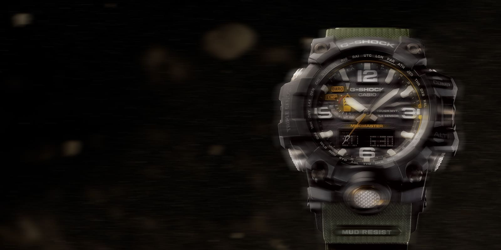 모든 버튼에 실린더 방식 가드 구조를 채택하고 실린더 방식 버튼 샤프트에는 개스킷 라이닝이 장착되어 있습니다. 이 구조는 먼지와 흙의 침투로부터 버튼을 보호할 뿐만 아니라 충격 완화에도 도움이 됩니다. 또한 크라운은 기밀성이 높은 스크루 록 구조로 보호됩니다. 개스킷은 크라운이 케이스 표면과 만나는 지점에 설치되어 먼지와 흙 침투에 대한 탁월한 방지를 보장합니다.