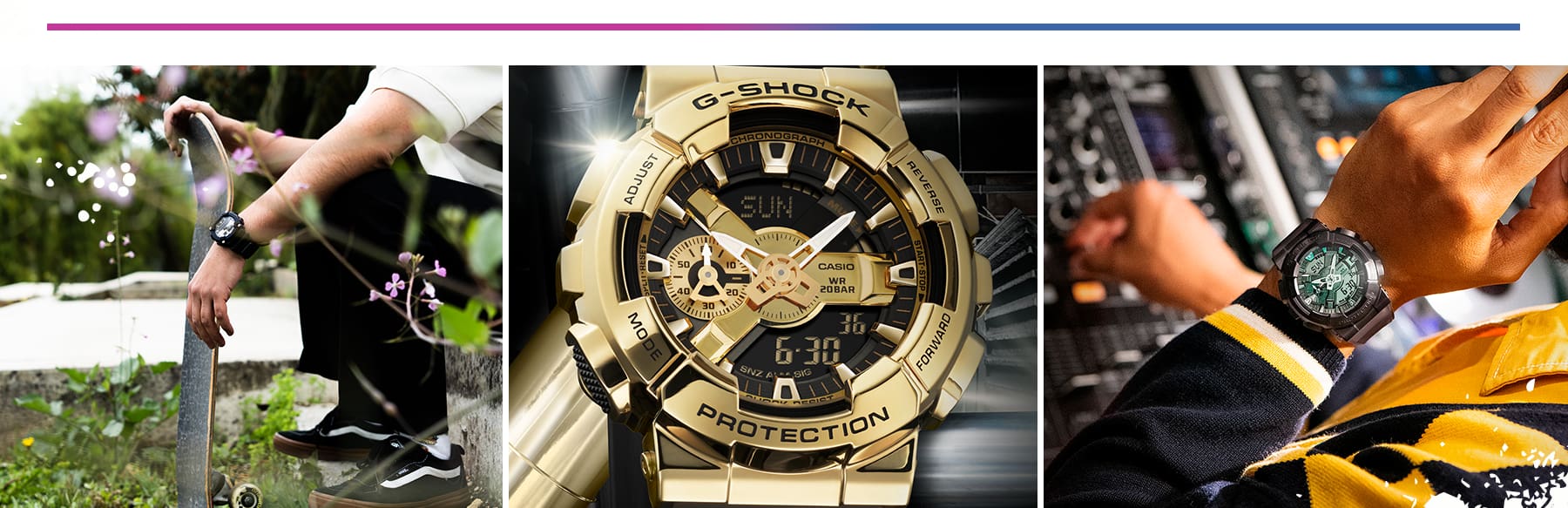 Vuélvete audaz y resistente con los G-SHOCK, inspirados en la moda skate y las actitudes intrépidas.
