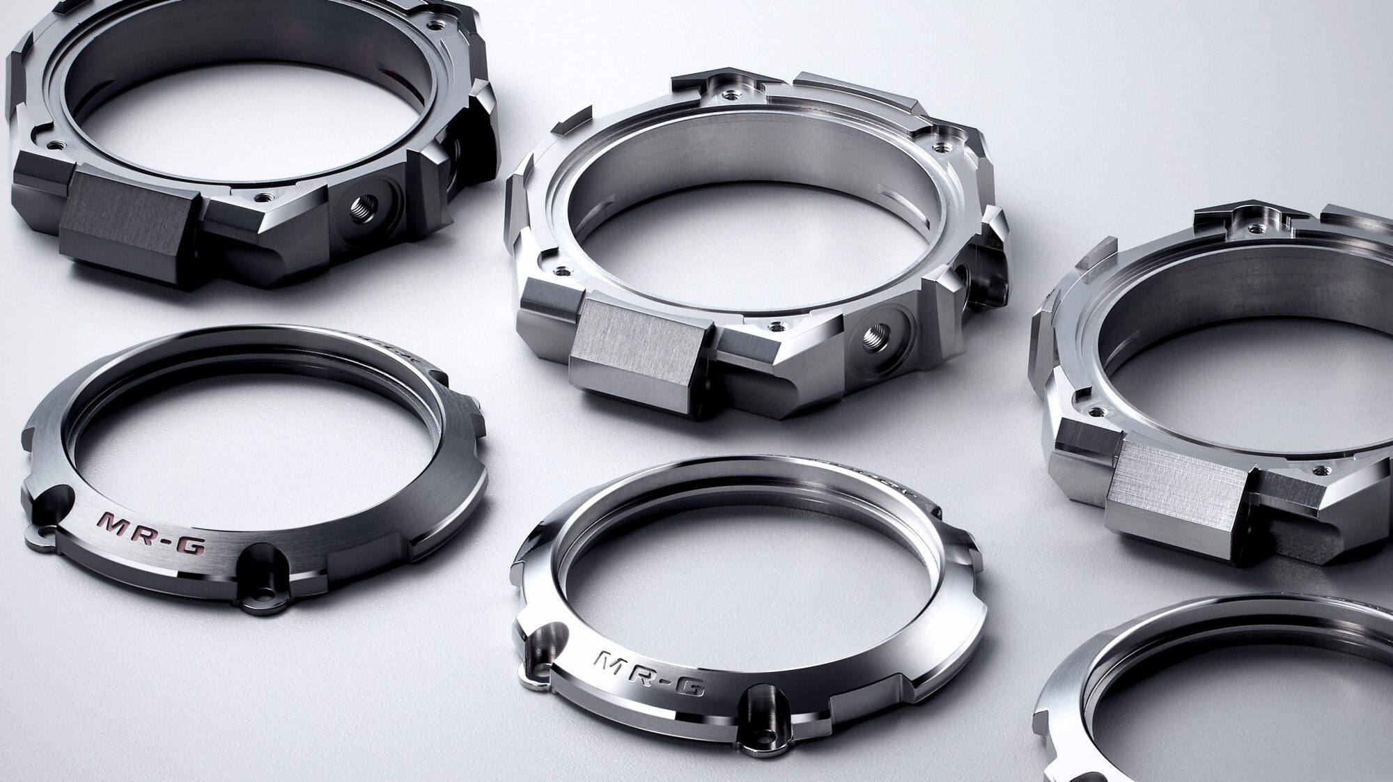 تم تشكيل هياكل الساعات من خلال صقلها، ثم قصها. بالنسبة إلى ساعات MR-G، يتم قص الهيكل قبل التلميع بواسطة معدات آلية مجهّزة بوحدة تحكم رقمي باستخدام الكمبيوتر (CNC)، مما يسمح بقص الأسطح الخارجية والداخلية للهيكل وتشكيلها بزيادات تبلغ 0,01 مم، ثم قص مساحة إضافية تبلغ 0,01 مم من الهيكل الذي تم تشكيله. تبدأ عملية التلميع بعد ذلك مع تلميع كل سطح فردي بدقة قبل اكتمال هيكل MR-G بالكامل.
