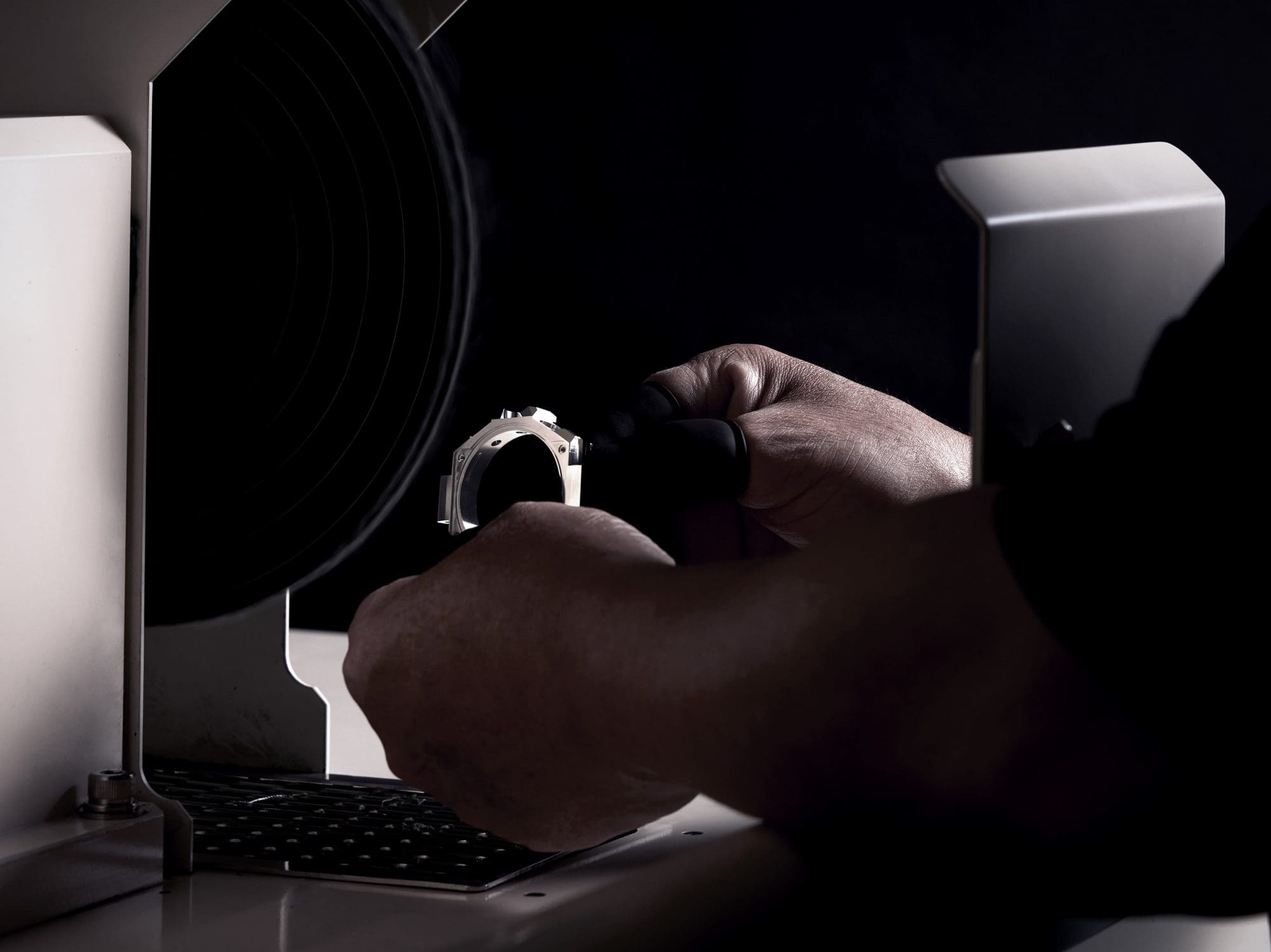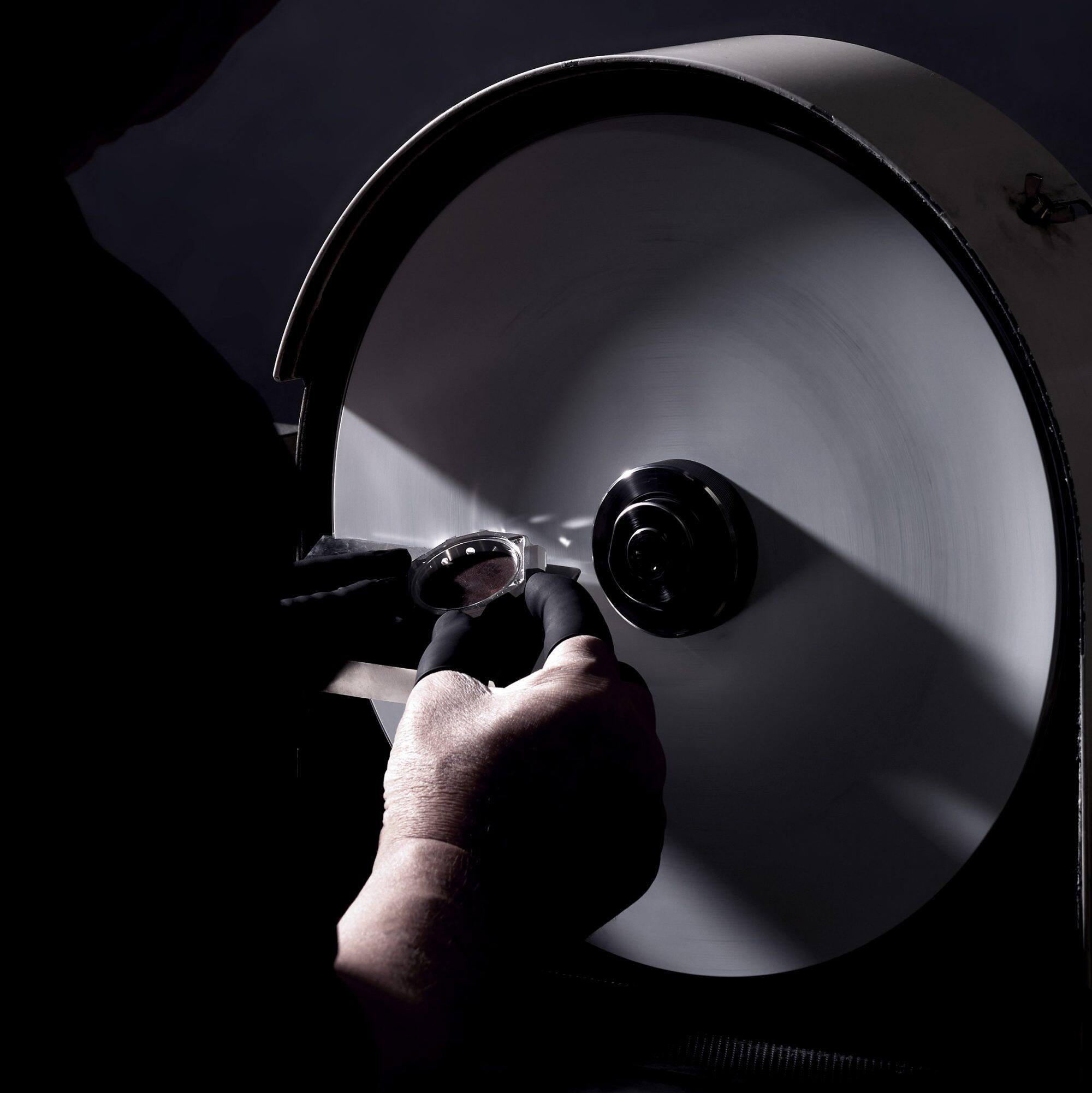 بدءًا من سبيكة معدنية، يتم صقل هيكل الساعة أولاً ثم قصّه، بعد ذلك يتم تلميعه وصقله بشكل أملس لتحضيره للمسات النهائية. يوفّر الصقل الأملس سطحًا يحاكي المرآة، لكن عادة ما تترك هذه العملية حواف المعدن مستديرة. باستخدام التلميع بتقنية Sallaz للحصول على سطح أملس وخالٍ من التشوّه، نقلل مقدار الوقت المطلوب للصقل الأملس، مما يعني أن الحواف التي تلتقي عندها المكوّنات تبقى محددة جيدًا ومتميزة، ولا تكون مستديرة. بالنسبة إلى الشكل المرتّب والأنيق لساعات MR-G، يُعد تحضير السطح بواسطة التلميع بتقنية Sallaz خطوة لا يمكن تخطيها.