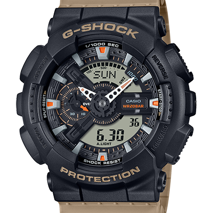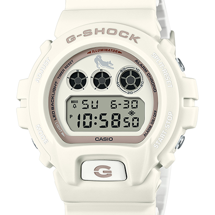 The band is made with Dura Soft, a fluoro rubber material that combines exceptional durability with flexibility and a comfortable feel on the wrist. Titanium components are insert-molded into the part of the band that connects to the case, ensuring a secure, robust seating. Titanium alloy is also used for the tri-fold clasp, further enhancing toughness. The band’s top surface features a design motif incorporating “SHOCK RESIST” symbols, while the underside displays the iconic brick pattern.