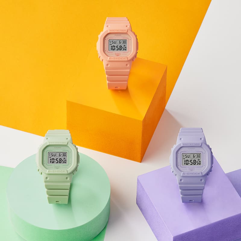 Compact, monochromatic G-SHOCK designs add a dash of colour to your casual everyday