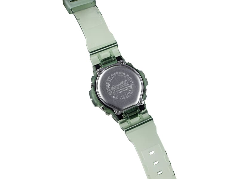 Siguiendo el modelo inconfundible de la clásica botella de vidrio verde de Coca-Cola, el DW6900CC23-3 irradia una vibra nostálgica que lo transporta instantáneamente a los viejos tiempos con un diseño que seguramente complacerá tanto a los entusiastas de G-SHOCK como a los de Coca-Cola.