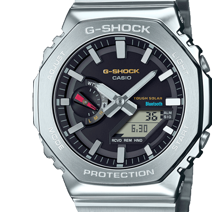 La audacia del metal se combina con un sofisticado brillo en los relojes G-SHOCK que ofrece vinculación con teléfonos inteligentes y carga Tough Solar.