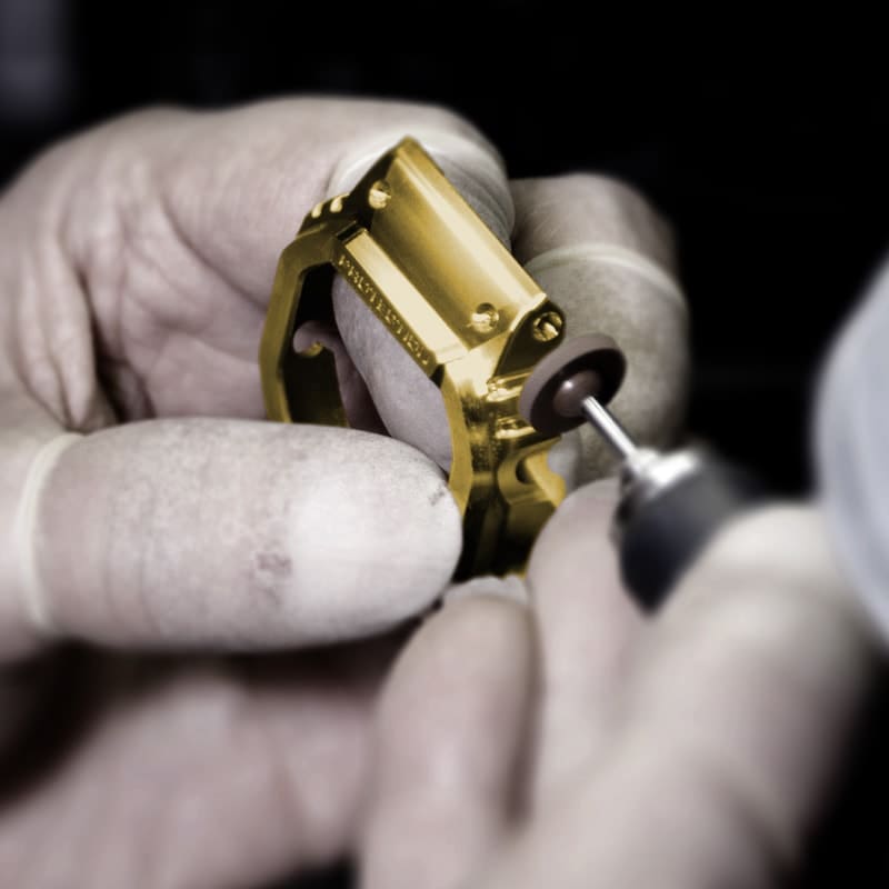 The aim was to take the long-pursued metal-clad version of the watch’s shock-resistant construction and to craft it in that finest of materials: gold.
