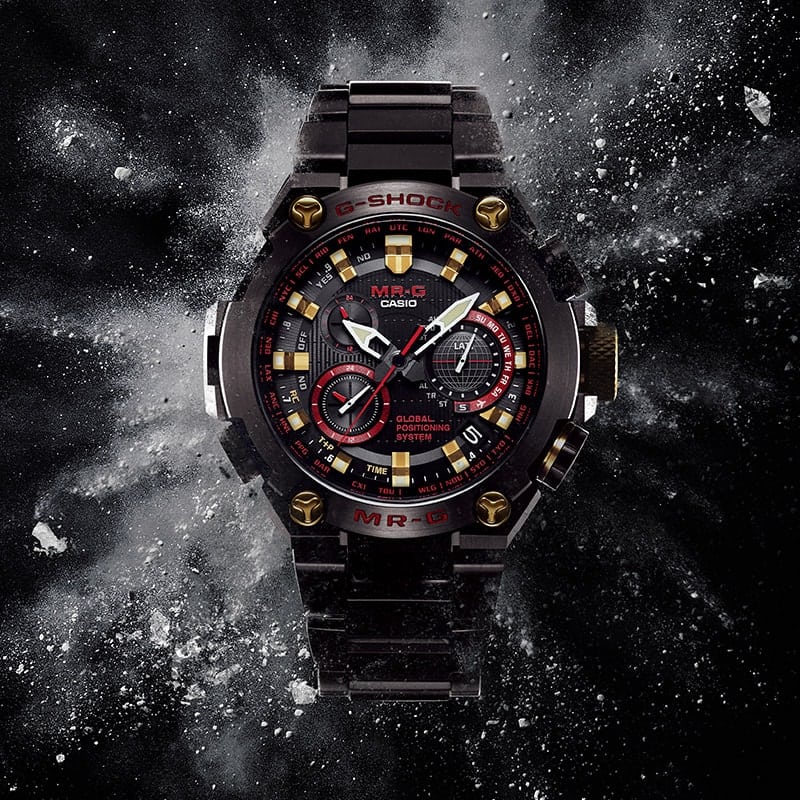 Launched with the release of the MRG-100, the MR-G line accelerated the pace of the move to full-metal construction for the premier line of G-SHOCK watches. The range of materials used was expanded from stainless steel to include variations such as titanium. Advanced forging techniques were employed to cast the complex forms of the bezel, case and band, and hairline and mirror surface finishes were applied with an intense attention to detail. With processes like these, development was driven by a pursuit of the finest quality, and the watches boasted ever more meticulous craftsmanship.