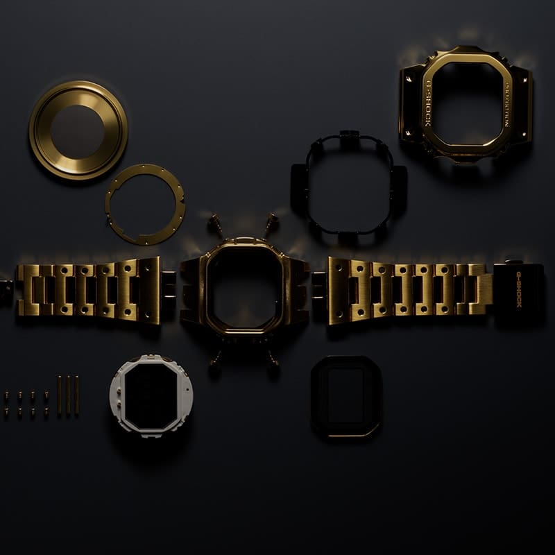 In Ibe’s words, “The G-D5000 is a creation that truly ventures into the realm of dreams in its fusion of the G-SHOCK, with its continuous pursuit of toughness, and — at the other end of the spectrum — gold, a material of utmost elegance. The square design, which has been maintained since the very first model, is symbolic of the G-SHOCK’s point of origin — the concept of an unbreakable watch. And the brilliance of the 18k gold is an embodiment of the dream of a full-metal G-SHOCK presented with the very finest degree of quality. The history of G-SHOCK is also a history of making dreams come true.”