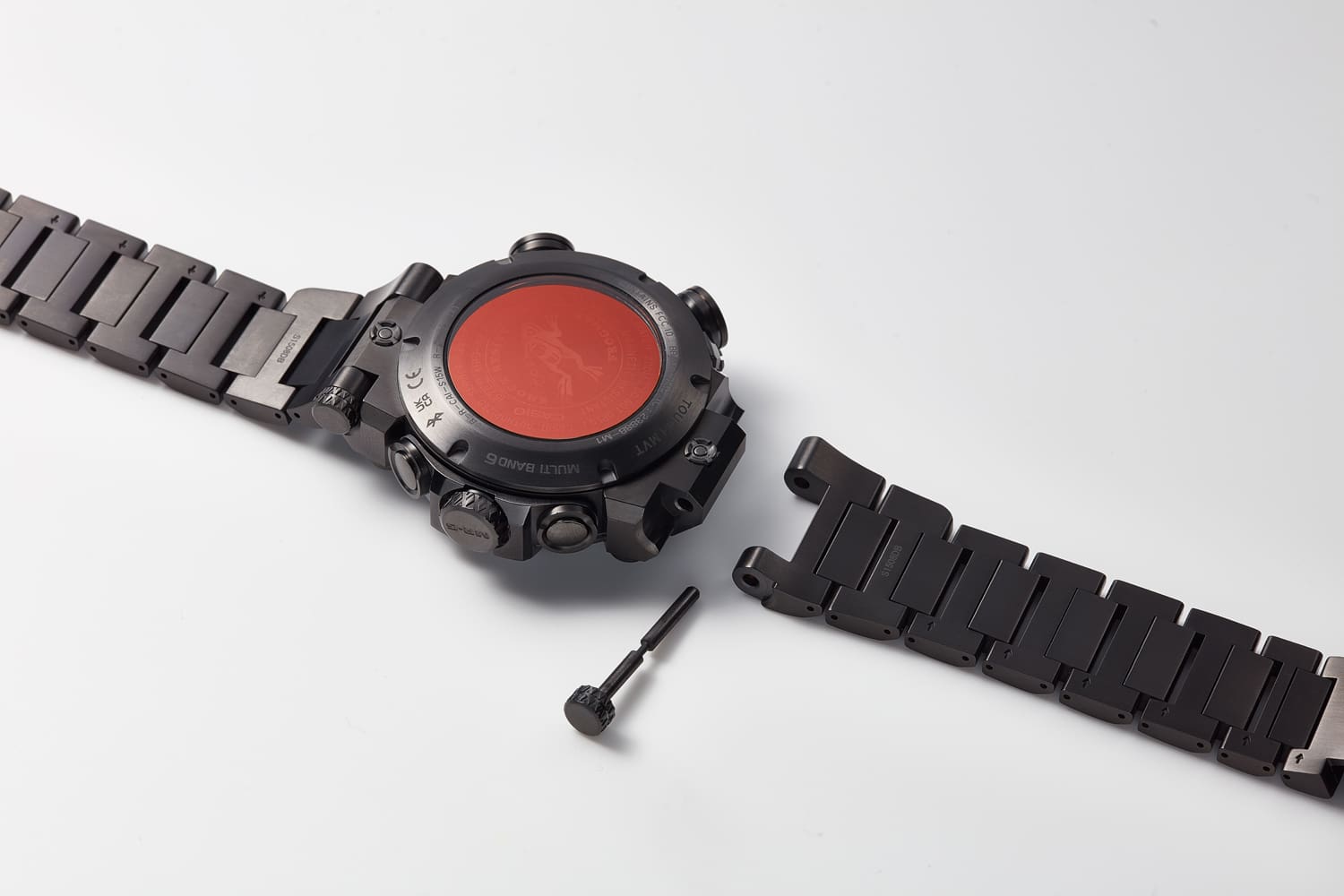 Another standout feature of the MRG-BF1000B is its titanium bracelet , mirroring the specifications of the limited edition MRG-BF1000E. Crafted by CASIO exclusively for the MR-G FROGMAN, the titanium bracelet features a short-pitch H-shaped design, ensuring a snug fit during diving activities. Each bracelet undergoes a rigorous manufacturing process, including a deep hardening treatment and DLC coating to each link, resulting in a texture befitting a top-of-the-line watch from G-Shock.
