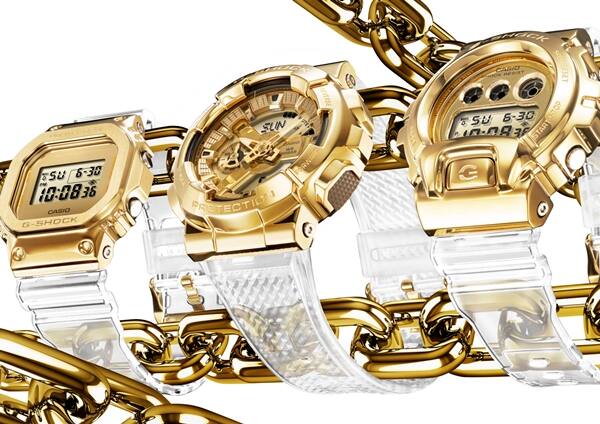 Joining the G-Shock Metal series are the three new watches with designs that are based on a gold ingot. They sport stainless steel bezels and clear semi-transparent resin bands.