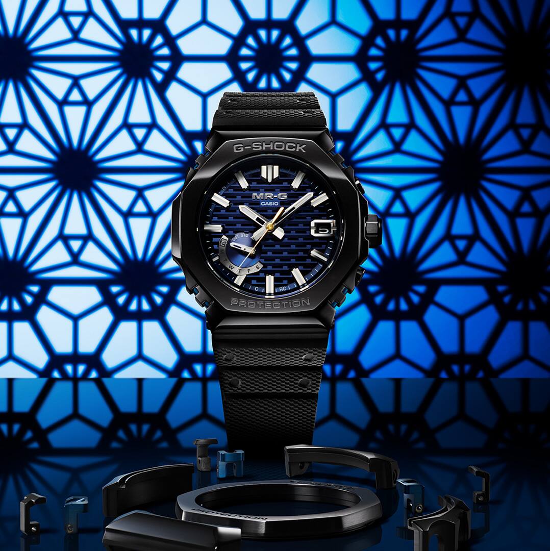 The glass fiber-reinforced resin case is covered with a stainless-steel bezel. The complex bezel form is crafted using meticulous forging, cutting, and polishing processes, right down to the connecting portions on the underside. Separate hairline and mirror finishes are applied to individual surfaces for enhanced texture.