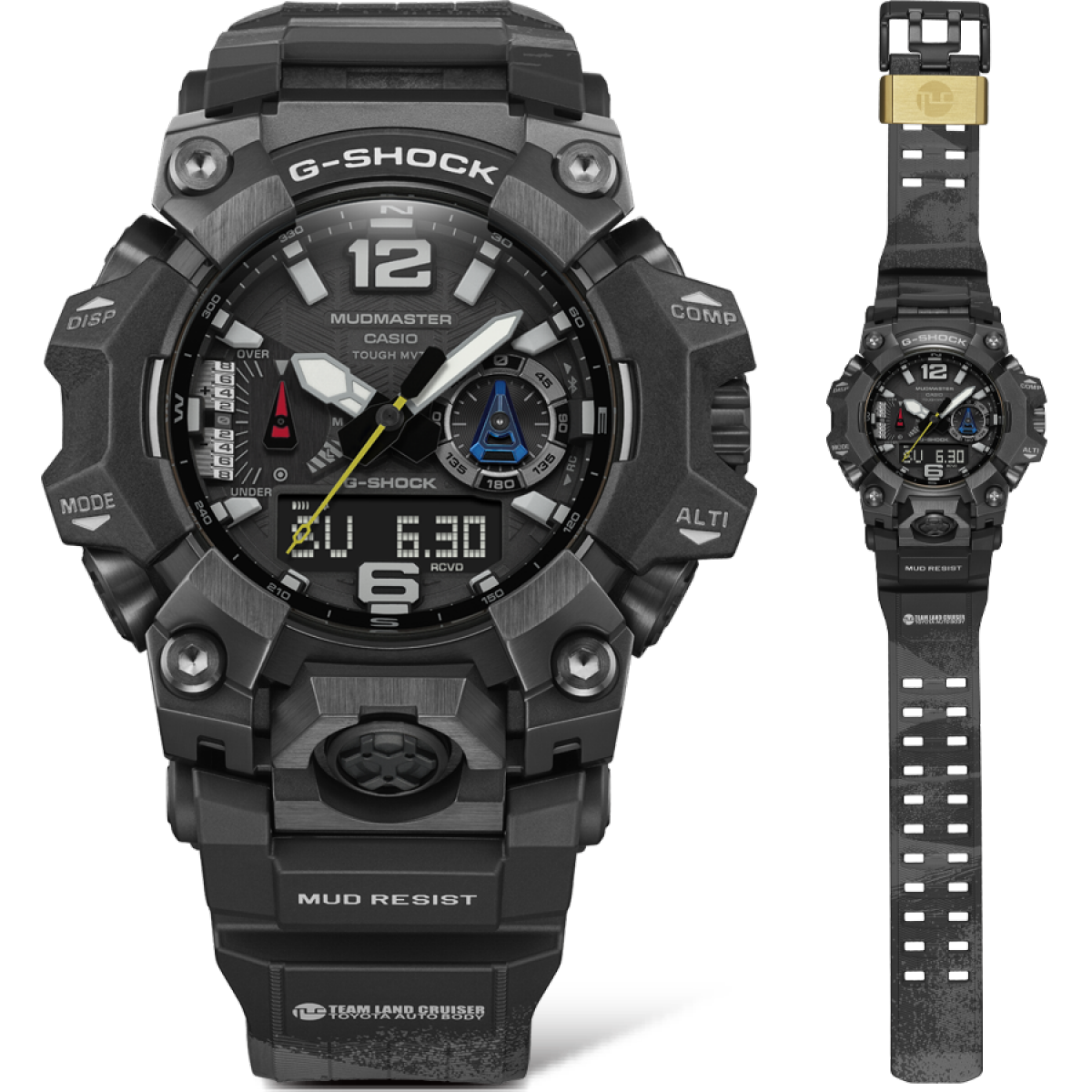 This collaboration with Team Land Cruiser Toyota Auto Body celebrates their continuing participation in the Dakar Rally, known as the world’s most grueling rally. Built on the MASTER OF G MUDMASTER GWG-B1000, the watch’s robust metal exterior components deliver high durability and wearability. The predominantly black aesthetic incorporates design elements and colors inspired by the desert in the moonlight, evoking the atmosphere of rally competition during night driving and mechanical maintenance under the moon. The bold design of the watch captures both the harsh beauty of the desert landscape and the demanding rally environment, embodying the compelling world of the Dakar Rally.