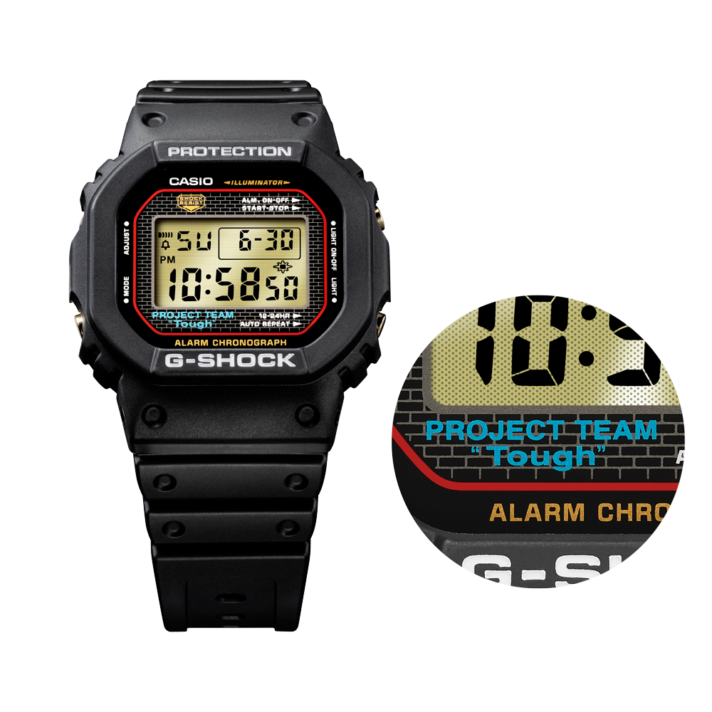 This is the name of the team that worked with Kikuo Ibe to develop the very first DW-5000C model. In 1983, the team brought IBE’s vision of constructing “a durable watch that would not break even if dropped” to fruition with a tough watch featuring an unparalleled shock-resistant structure. To commemorate the completion of that very first G-SHOCK, a special model inscribed with the team’s name was distributed only to the eight-team members.