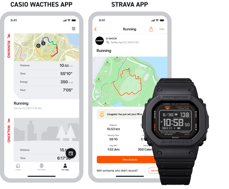 Je activiteiten- en GPS-logboeken worden automatisch direct overgezet van de CASIO WATCHES-app naar STRAVA. Nu kunt nu je gegevens en logboeken controleren op STRAVA.