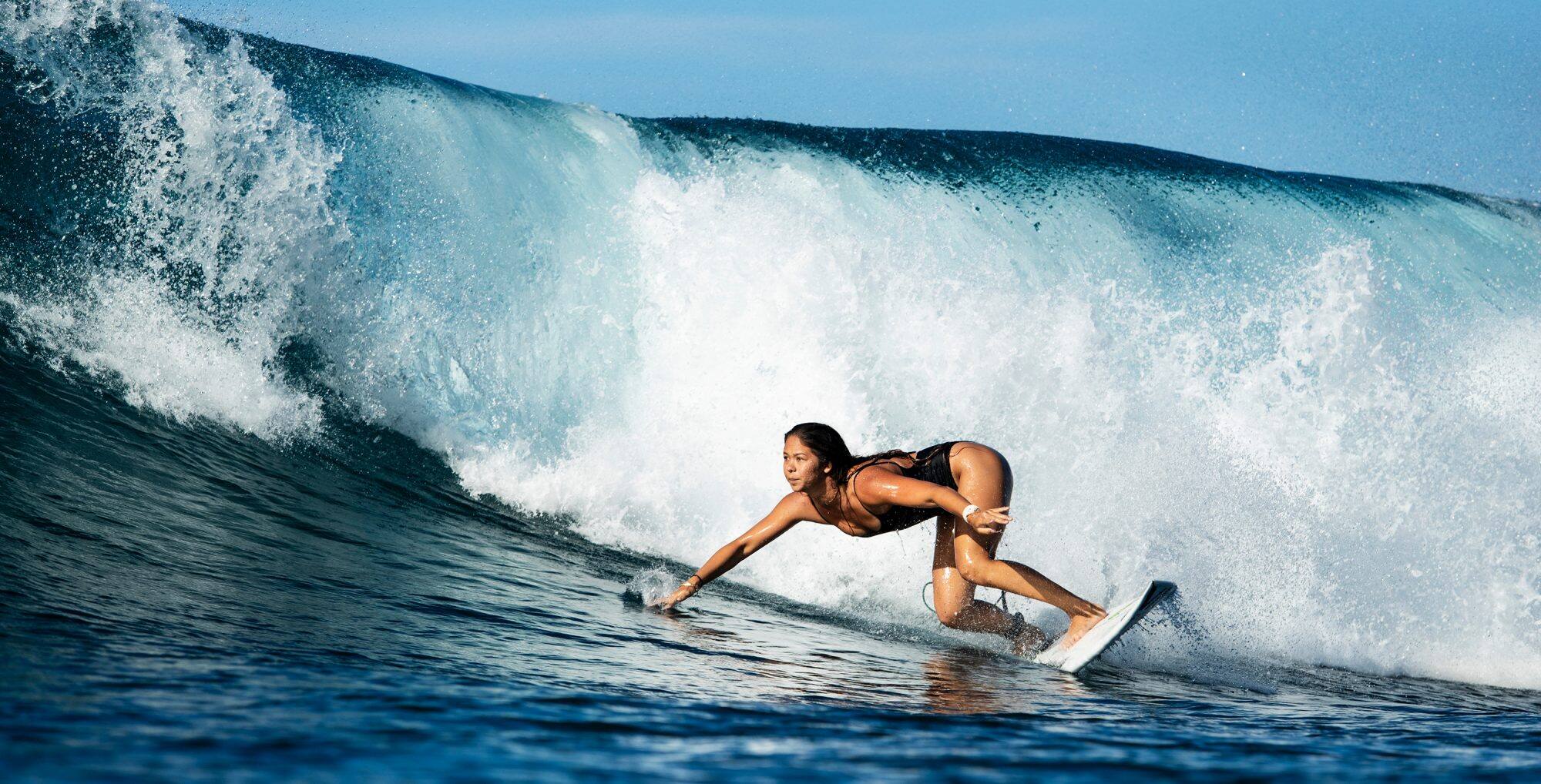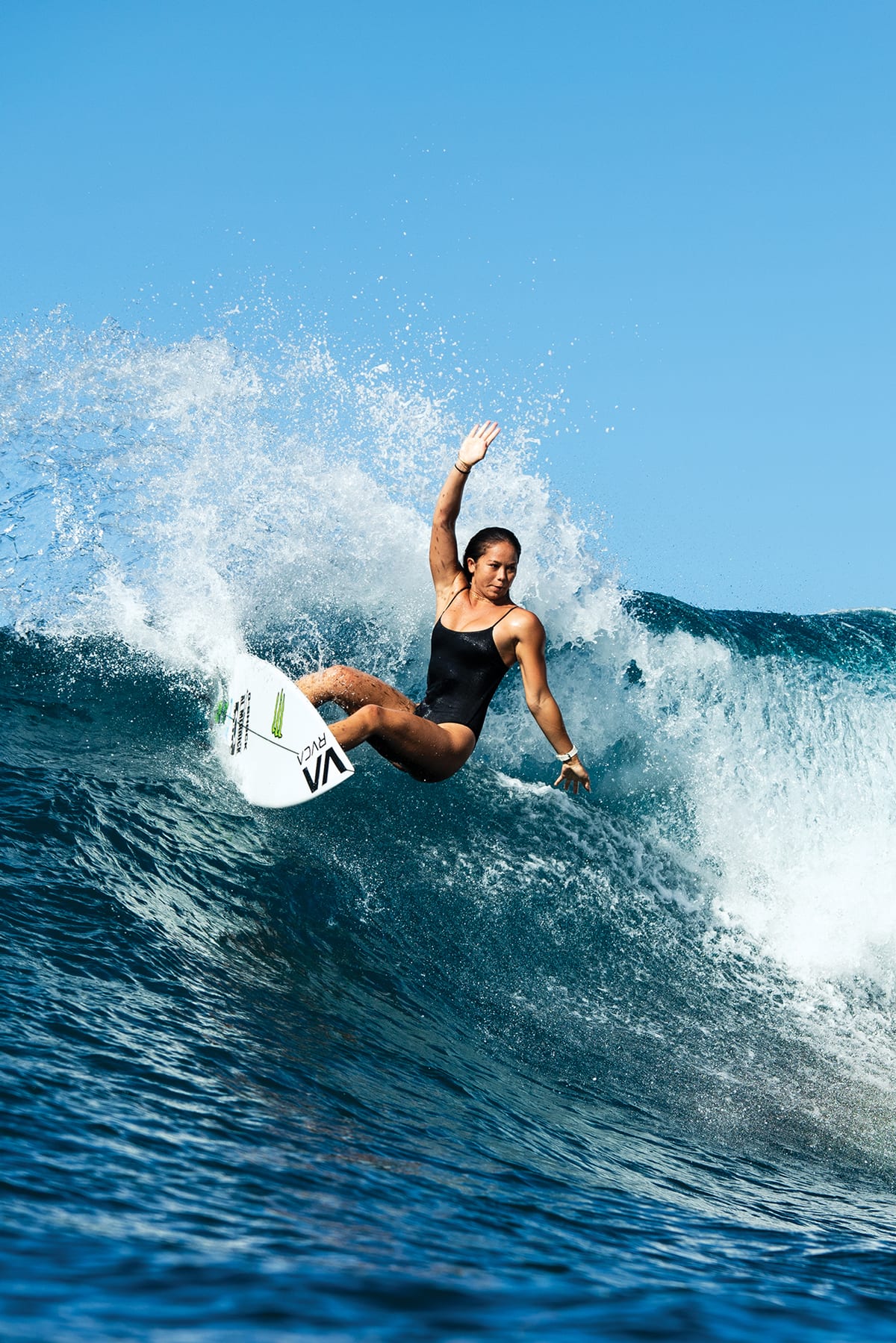 BettyLou Sakura Johnson is a young prodigy surfer from the North Shore of Oahu. Her family had a great influence on her love for outdoor activities, which included surfing. It did not take long for many to see she had a natural gift in the water. In 2020, she appeared in her first major CT event as a Wildcard at the Maui Pro, placing 9th overall. Now competing on the World Championship Tour, BettyLou finishing 11th overall in the 2023 WCT rankings and has her sights and heart set on a World Title while maintaining a keen sense for fashion and design giving her her own unique identity in the world of surfing.