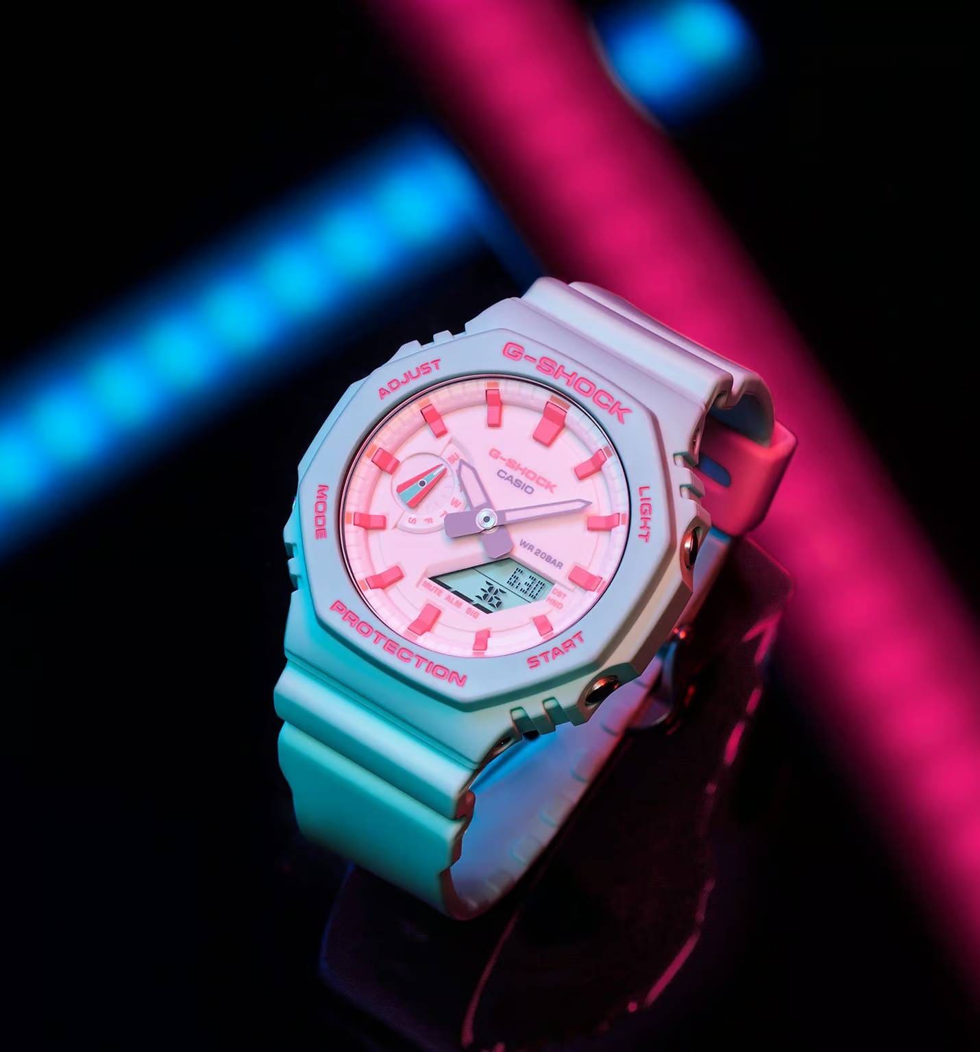 It’s been a year-long celebration for the brand’s 40th anniversary milestone. G-SHOCK released a series of special editions, collaborating with partners such as New York artist Eric Haze, NBA pro basketball player Rui Hachimura, French apparel brand FUTUR, and most recently, Indonesian rapper Rich Brian. The special GA-2100 model received a seafoam-green treatment with bright pink accents — colors that the artiste recalled from his first guitar as a young boy.