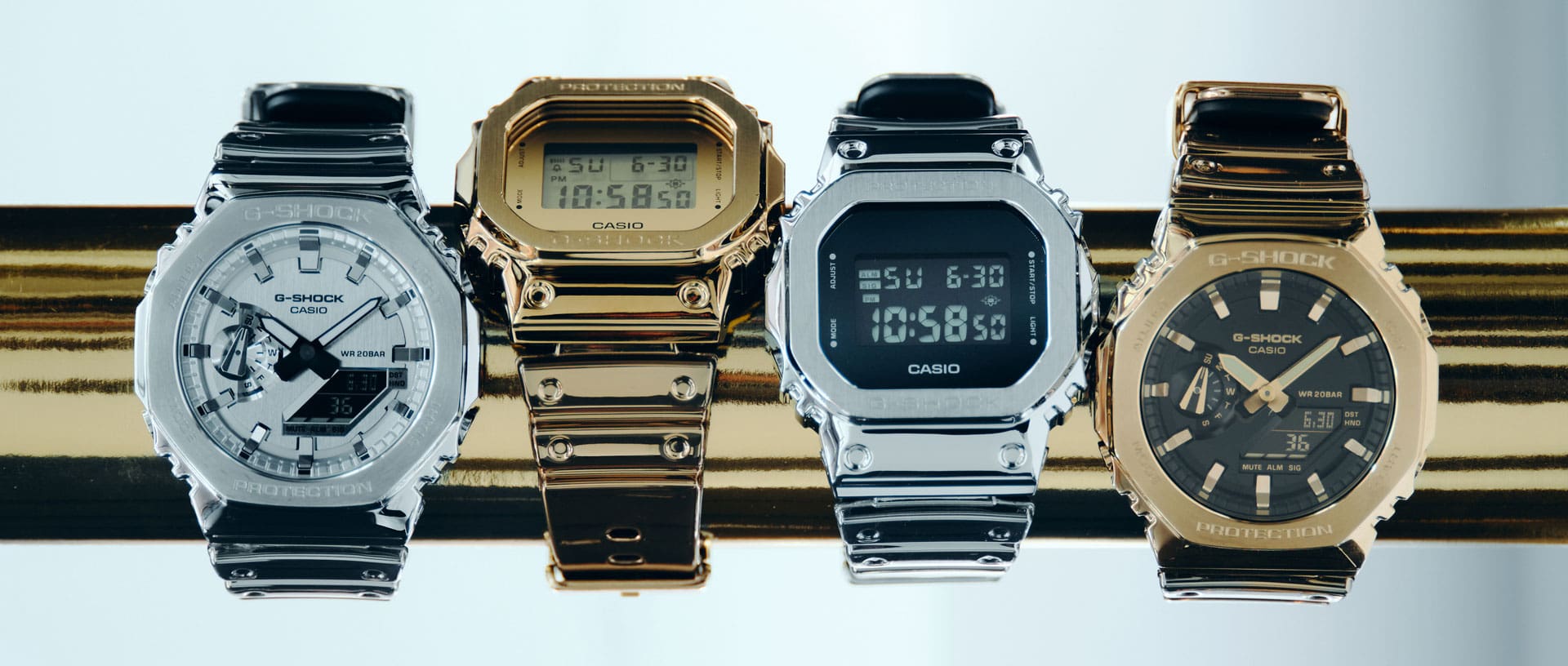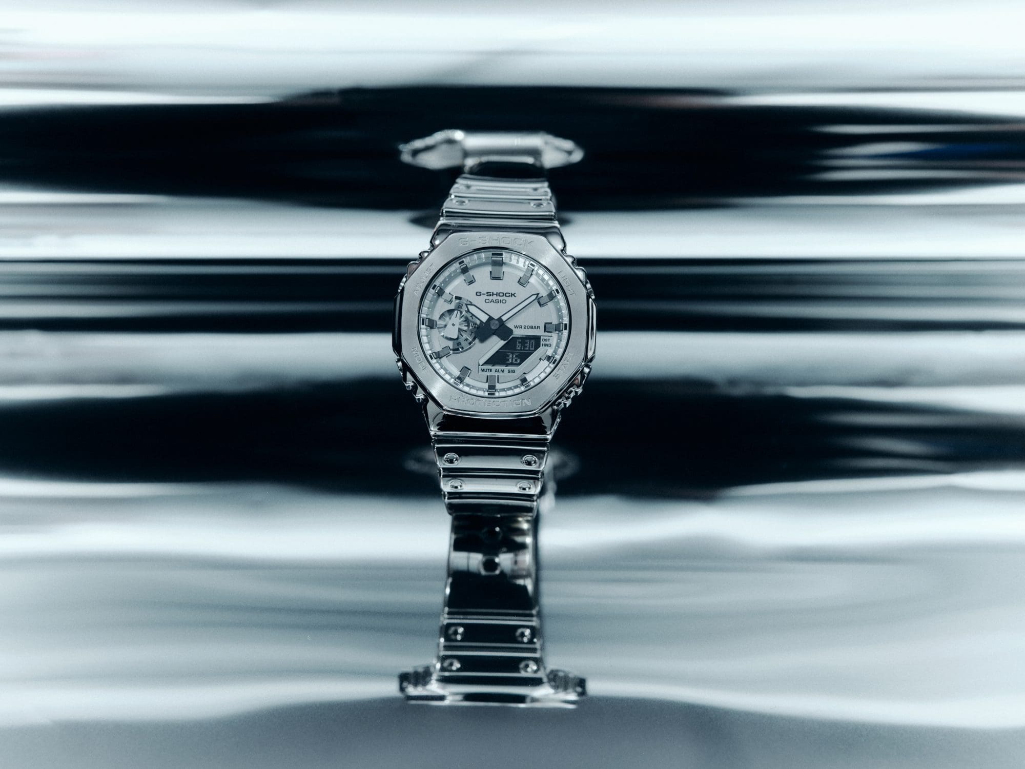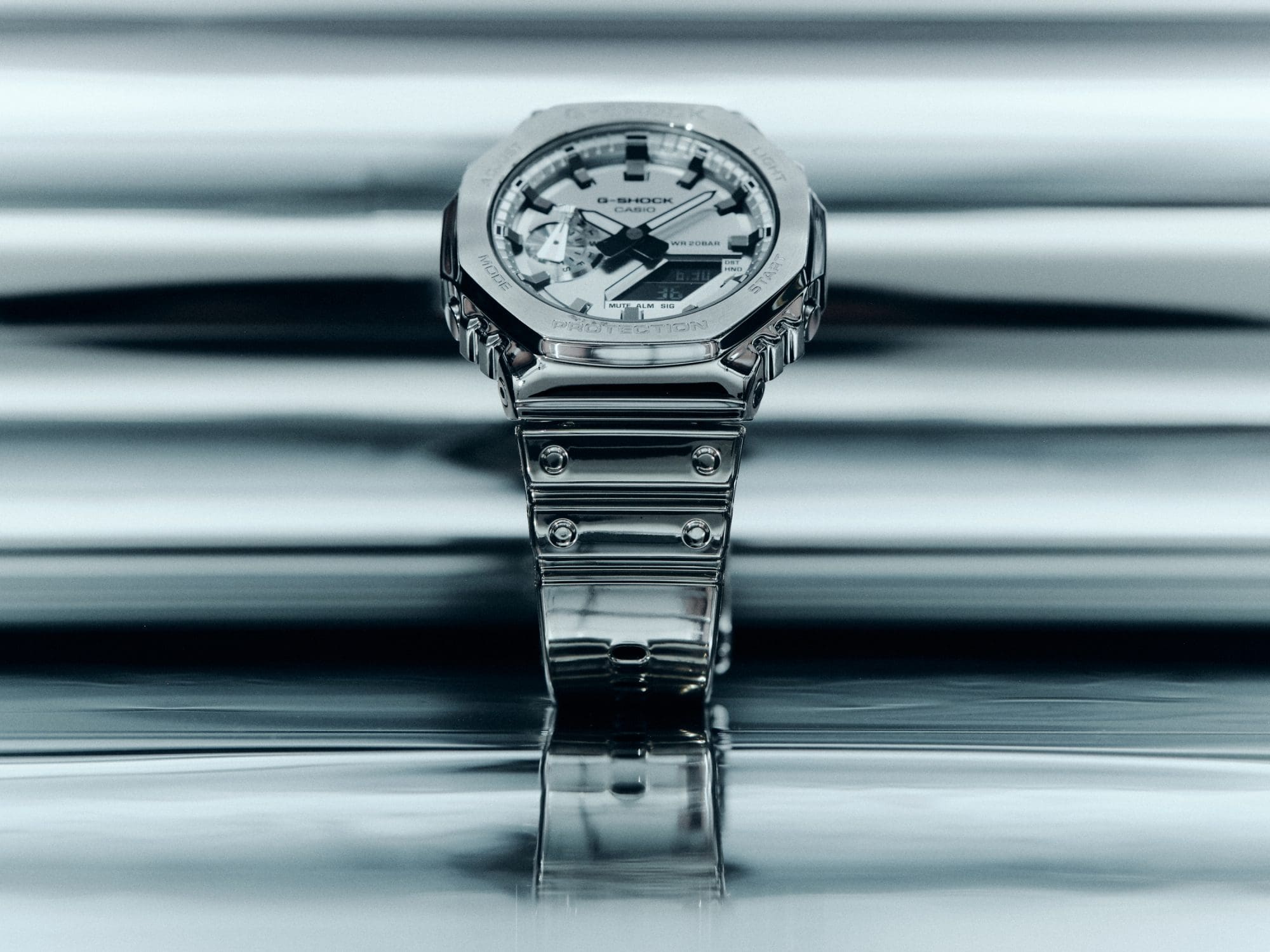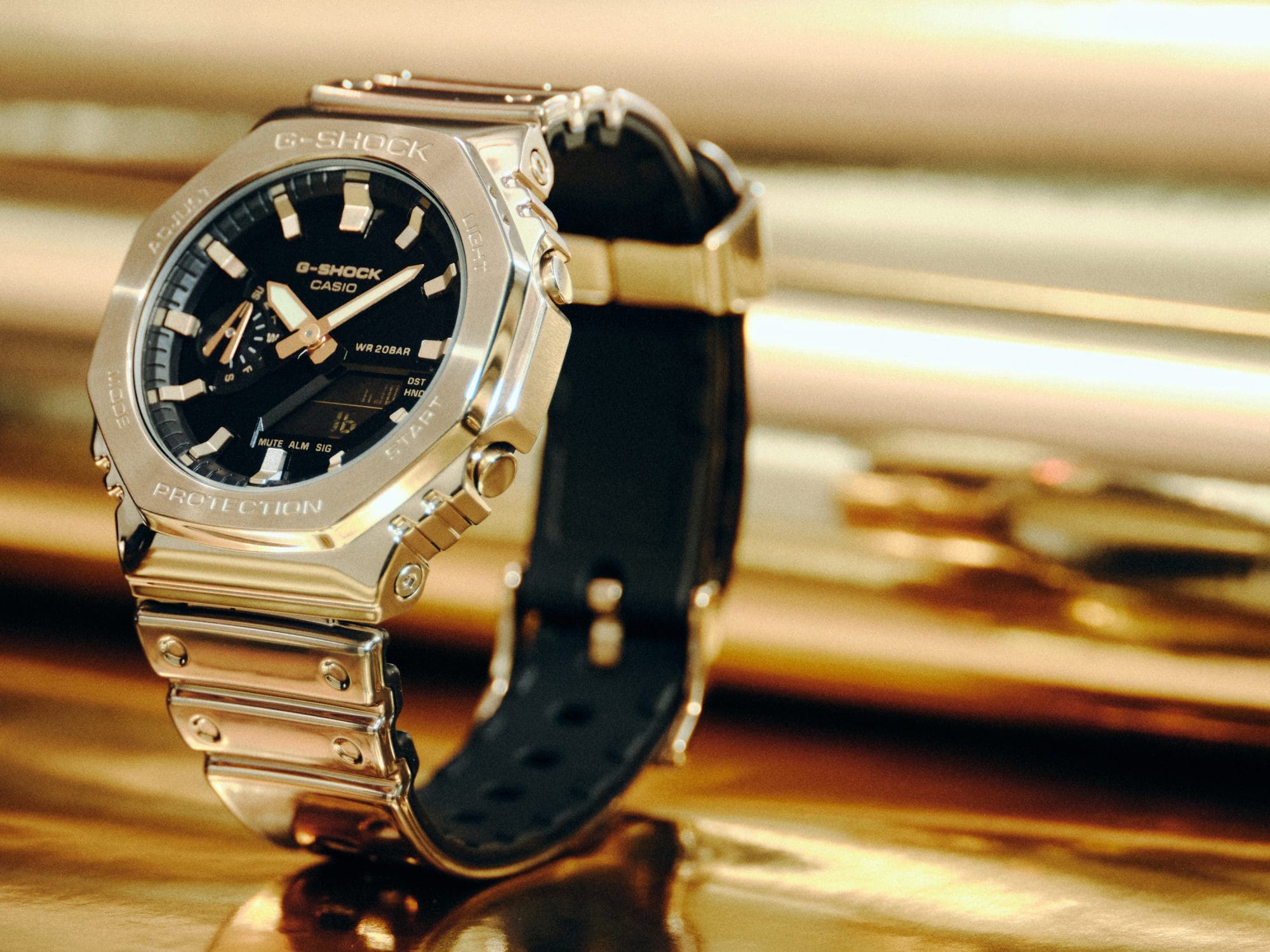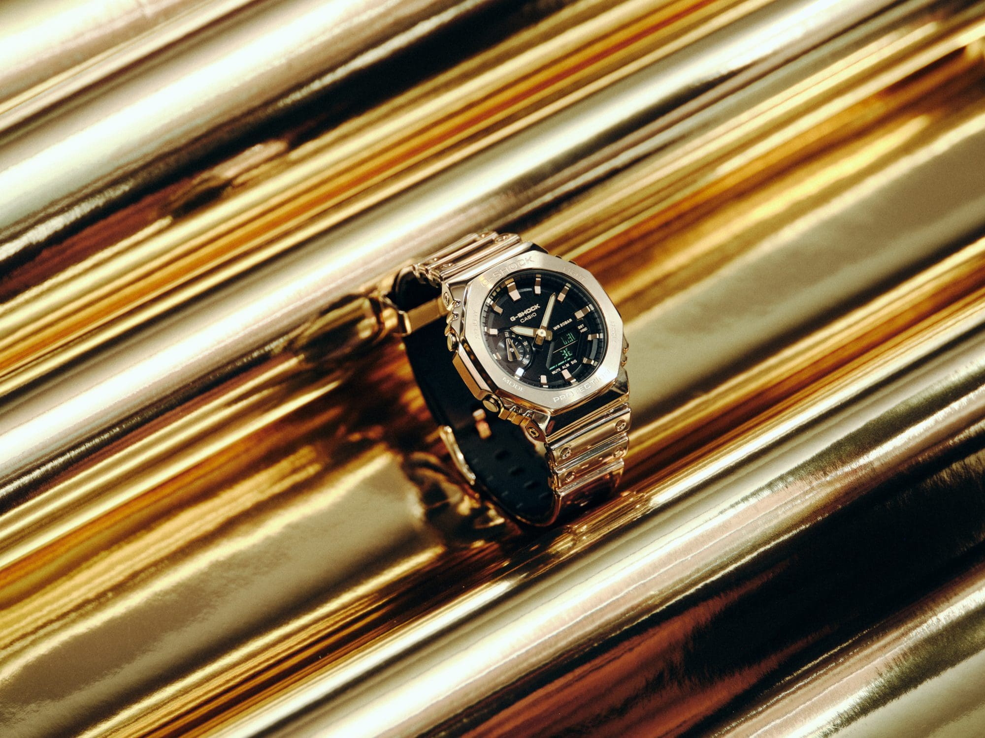 G-SHOCK is back with another lineup of GM-5600 and GM-2100 watches. Building upon its formula of hardwearing functionality, the Japanese watchmaker makes yet another innovative leap into the future by launching the Tough Silicone Band. The proprietary material, which took ten years to hone, combines silicone and urethane properties and features a shimmery, high-gloss finish. The newest Fine Metallic series looks and feels luxe while retaining the brand’s penchant for rugged, utilitarian aesthetics.